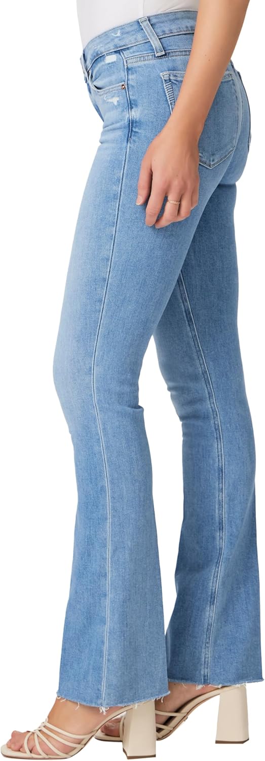 A universally flattering mid-rise style with a fitted silhouette through the hips and thighs, a slim bootcut from the knee down and a slightly shorter 32” inseam. Cut from our TRANSCEND VINTAGE denim in a bright, powdery blue wash with lived-in details and a raw hem, this style has the look of authentic vintage denim but is incredibly comfortable with plenty of stretch and recovery.