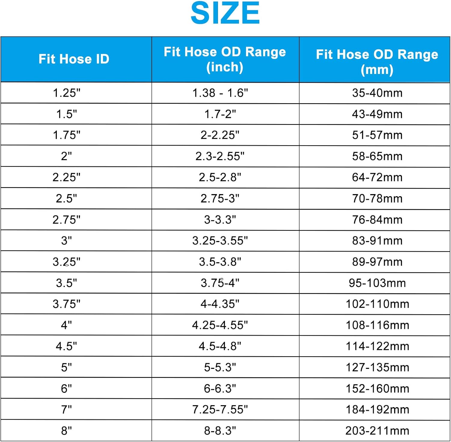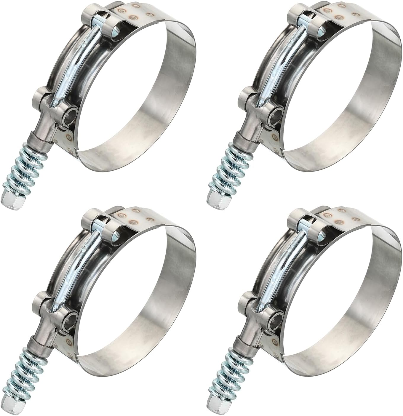 The T-Bolt Hose Clamps find extensive use in automotive, industrial, and marine applications. They are suitable for securing and connecting hoses, pipes, and exhaust systems. Their reliable sealing capabilities make them essential for maintaining optimal performance and preventing leaks in critical systems.SpecificationMaterial: 304 Stainless SteelHeight: 19mm / 0.75 inchThickness: 0.6mm / 0.02 inchFit Hose Diameter Range: 203-211mm / 8-8.3 inchPackage List: 4 x T-Bolt Hose ClampsAdvantageMade from 304 stainless steel, ensuring exceptional durability and resistance to corrosion and rust. The stainless steel material provides reliable performance in many conditions.Featured a tightening mechanism that allows for easy expansion and contraction by controlling the bolt. This ensures a tight and secure fit, providing excellent sealing properties for your connections. The smooth surface of the clamps minimizes the risk of leaks or damage to the connected componentsInstructionTo use our T-Bolt Hose Clamps, simply position the clamp around the desired connection point, ensuring it is centered and aligned properly. Use a screwdriver to tighten the bolt until the clamp securely holds the components together. Adjust the tension as needed to achieve the desired fit. Ensure proper alignment and check for any signs of leakage or loosening regularly.NoticeAvoid over-tightening the clamps, as this can cause damage or distortion to the connected components