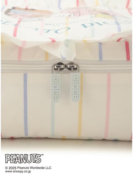 (C) 2025 Peanuts Worldwide LLC. All rights reserved. [Peanuts exclusive gelato pique] travel pouch with art print based on pillow image. [Design/Styling] From the peanuts and gelato pique, a collaborative series that can be enjoyed by the family. This travel pouch is a special original art exclusively for gelato pique that expresses the happy moments before bedtime. Familiar characters such as Snoopy and Sally Brown are gathered around the bed. She depicted a buddy with this puffy border item to throw pillows, eating ice in bed, and thinking of friends. It has a large zipper that opens all the way around and is large enough to store clothes and underwear, and can be tucked into a suitcase. Made with rainbow colored fabric and decorated with pillow inspired ruffles. Combine with the same series of roomwear, pouches, and drawstring sets for total travel packing