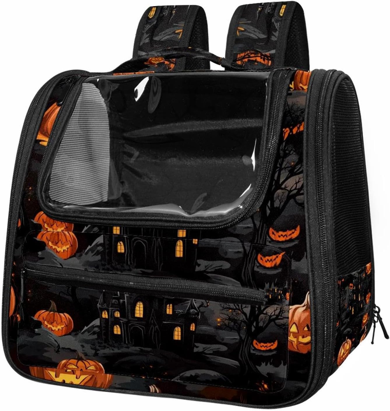 Well made: Cat Backpack Carrier is made from 900D oxford fabric, pp webbing, velvet, nylon, which is very sturdy, environmentally friendly and breathable. Not easily scratched by pet’s claws, pet backpack carrier is SAFETY & ANTI-SCRATCH. The back padding will give you a comfortable and breathable experience. Ventilated Backpack: With a breathable window in the front, this pet backpack allows cats to enjoy the sun without feeling stuffy. There are two side pockets and one big front pocket, and you can take foods or toy for your kitten pet. It is big enough for cat to turn around, and there are side pockets and hook holes, you will enjoy the greatest convenience when taking your cat out. Perfect size: Cat carrier is 15.75x9.84x13.78in/40x25x35cm. Fits most small/medium sized cat, dog, and pet. Quality fleece bed provide a comfortable place for your pet. Lightweight and easy to carry to all places. Built-in harnesses keep your naughty friends from escaping. Removable cosy mat for easier cleaning and let your pet enjoy it inside. Easy to carry: The adjustable shoulder strap of pet carrier bag help you hands-free carrying and makes it the most safe and convenient pet carrier bag for your travel. Seat belt design provide pets with safety protection throughout the trip. Pad protection keep your pets comfortable during travel. Unique Design: Innovative inside graphic design gives you a stereoscopic 3D visual experience. You also send us the photos you interest to make your unique dog or cat carrier. Pet bag is also a amazing gift for pet lover.