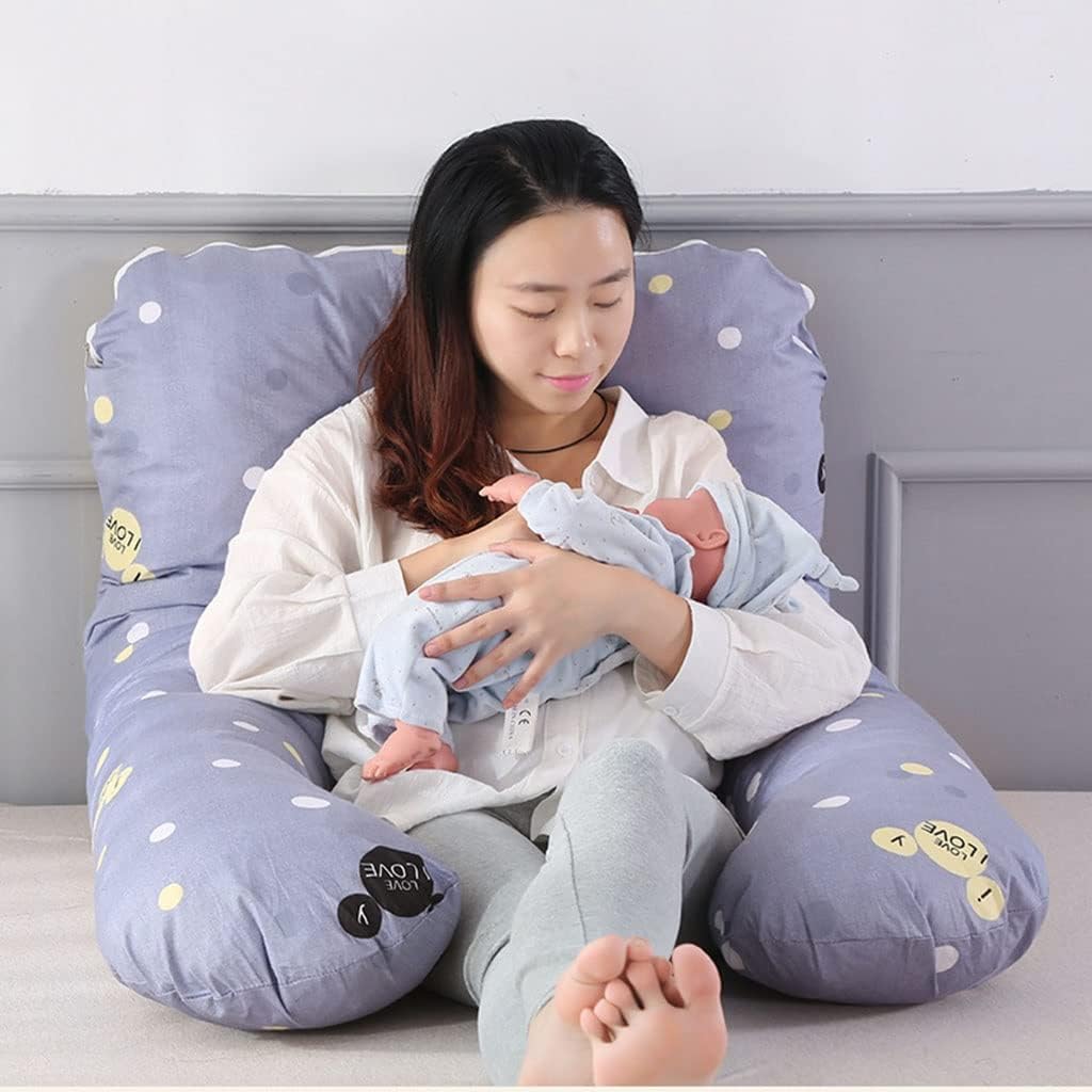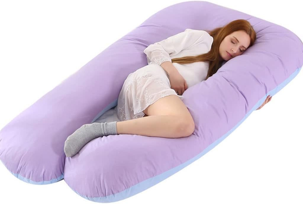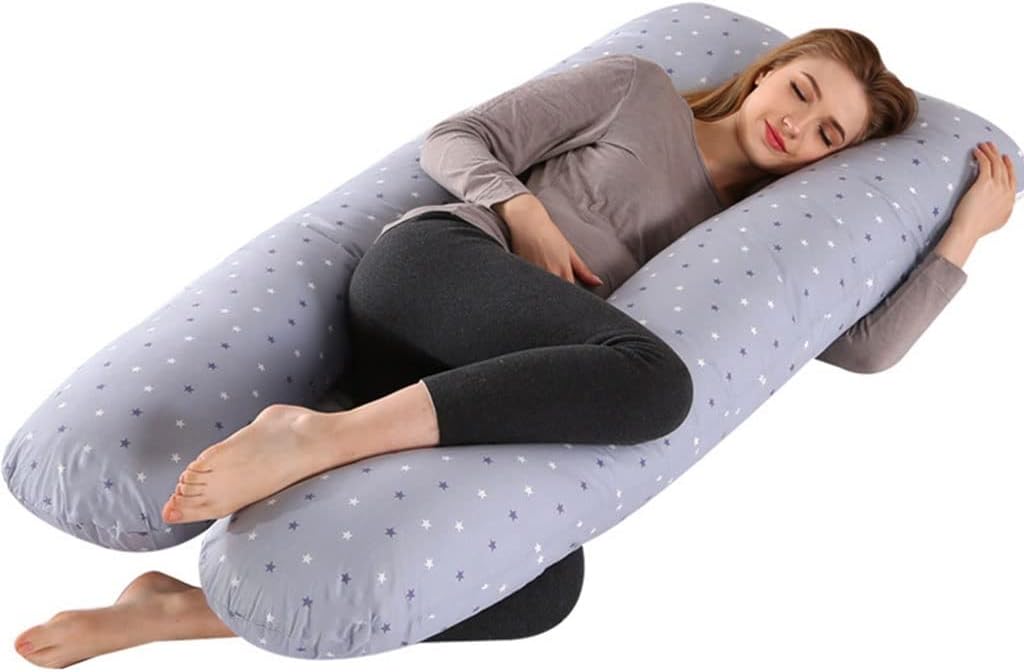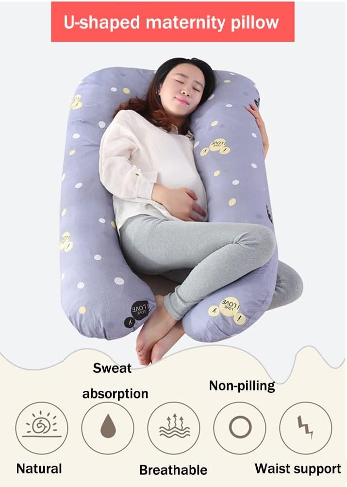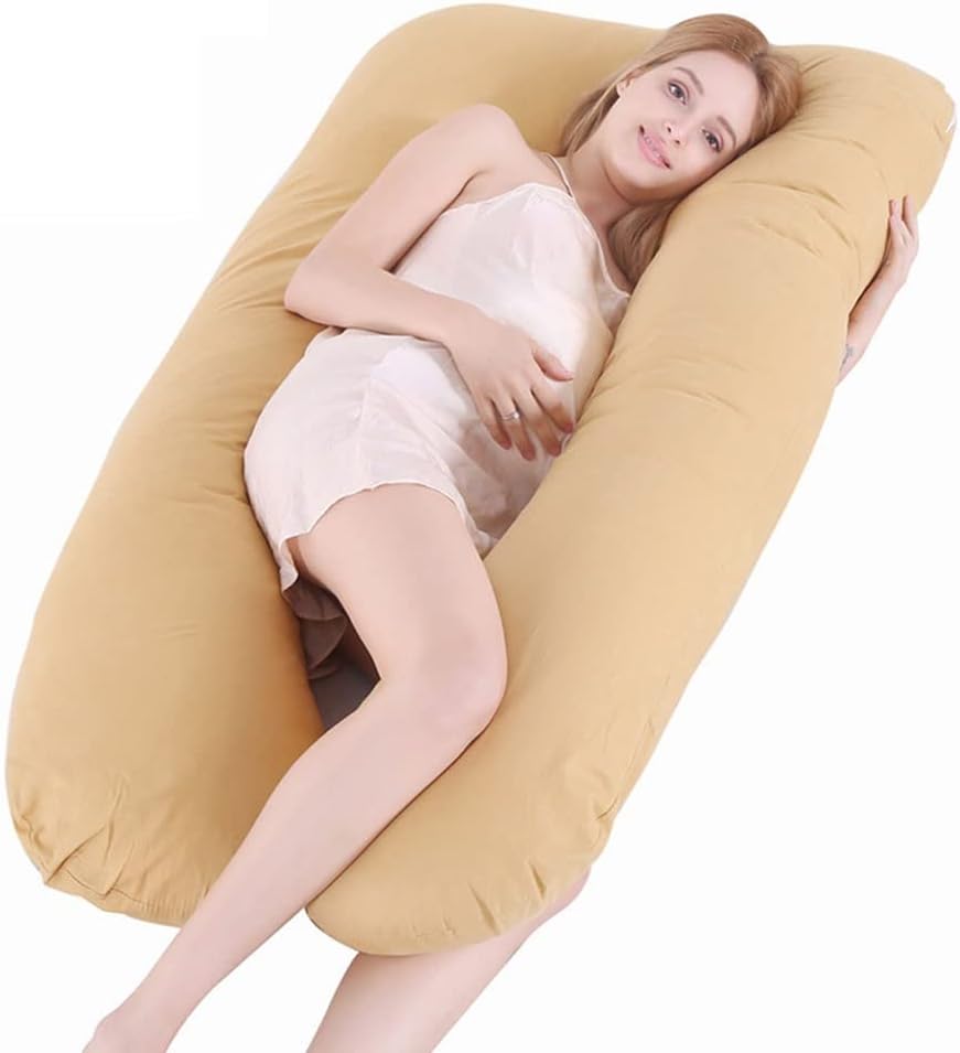 Why Choose Full Body Pregnancy Pillows?Unique U-shape Design Provides Full Body Supportmaternity pillow is specifically designed to accommodate the contours of the pregnant body. The perfect mix of U-shaped pillow and C-shaped pillow provides support for every part of your body including your bump, knees, hips, back, neck, head, makes you feel comfortable when you sleep.▶ Help You To Say Goodbye To Aches And Pains!Pregnancy Body Pillow conforms to the shape of your body, which helps align your spine in a more normal way and relieves back pain and stress. This causes you to breathe easier, promotes better circulation, and aids in muscles relaxation.It also helps elevate your leg to improve blood circulation, relieve pregnancy swelling.▶ All-in-One and Widely-Use PillowThis body pillow allows manipulating the shape to your liking. You can sleep with it, sit up with it supporting your swollen feet, use it to give your back extra support while reading. Even after you give birth, our pillow will support your baby during bottle-feeding.▶ More Than Just A Pillow For Pregnant WomenThis full body pillow is perfect for anyone needing more support, recovering from surgery, or tired of having to use separate pillows to support their head, neck, legs, and backWarm tip: In order to facilitate transportation, this product is vacuum-packed. When you open the package, you only need to place it naturally, and tapping can quickly restore the pillow to its original fluffy state, without harming the quality and user experience
