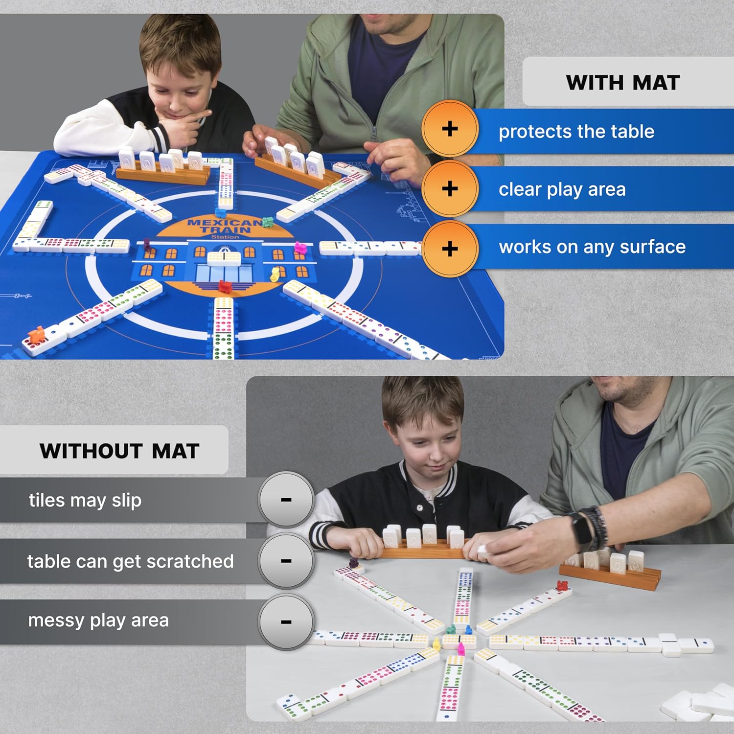 Mexican Train Dominoes Jumbo Set Double 12 + Maxican Train Play Mat