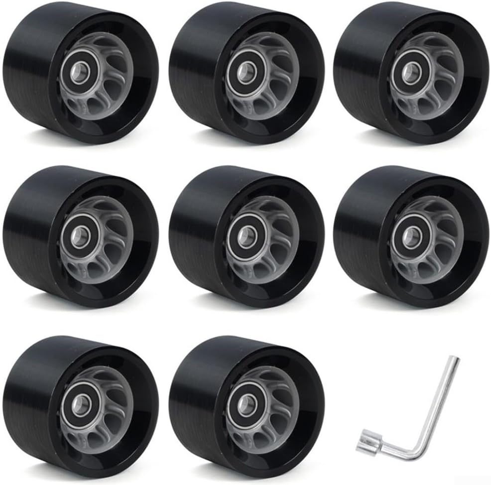 Specifications:*Product Name: Roller Skate Wheels*Material: PU+high carbon steel*Size: approx.Size1: 58mm*32mm (88A)Size2:58mm*39mm*Color: As shown in the picture*Weight: about 950g/set* Hardness: 82A/90A/92A/95APackage Content:8 x Roller Skate Wheels1x Wrench