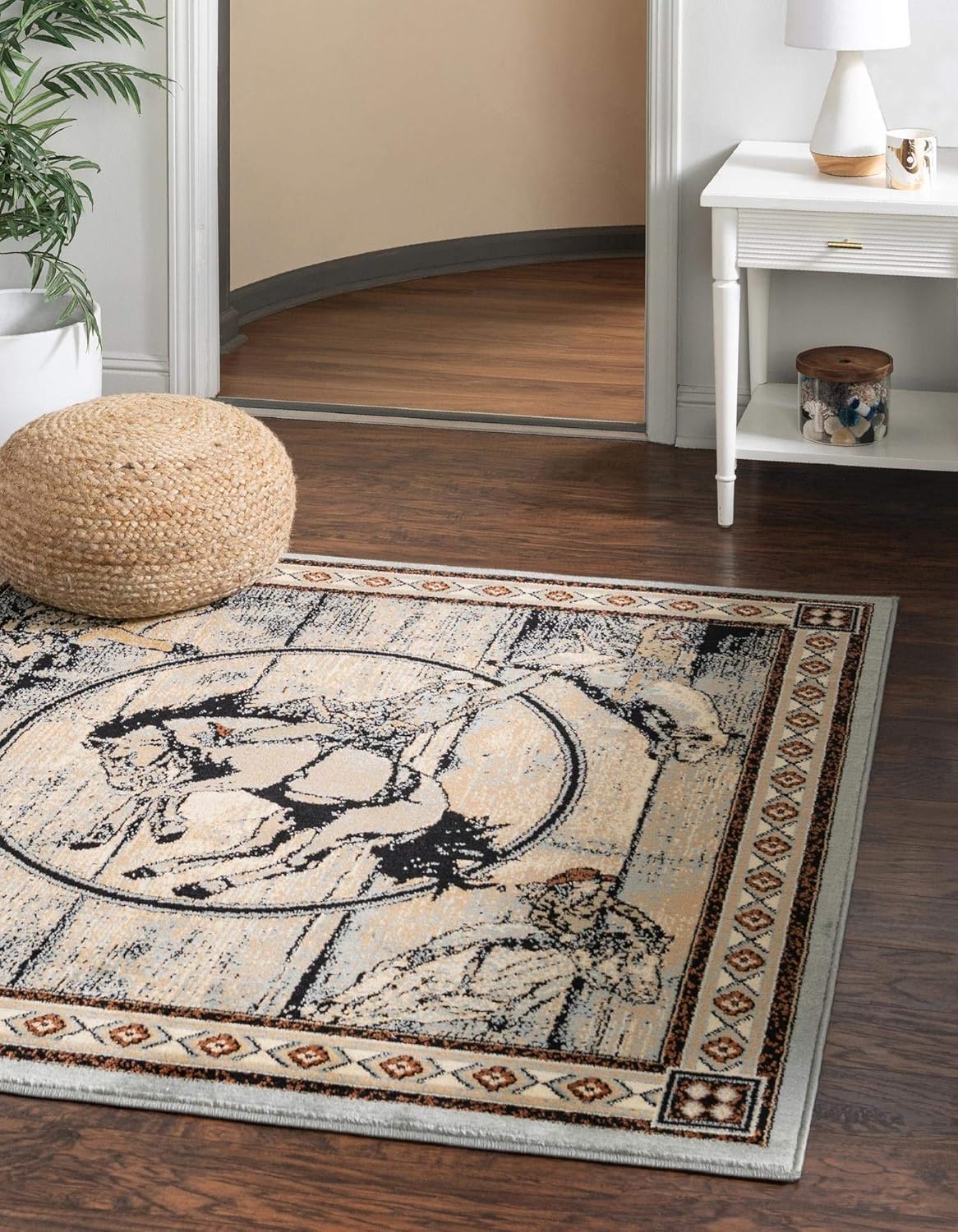 Get comfortable in your home on the range! The Pioneer Collection combines Old West design motifs and southwestern geometric patterns with earthy colors and a distressed vintage texture for a rough-and-tumble look that is as individualistic as you are. The medium-height 1/2" polypropylene pile is soft underfoot and easy to clean. Perfect for medium to low traffic areas like living rooms and bedrooms.