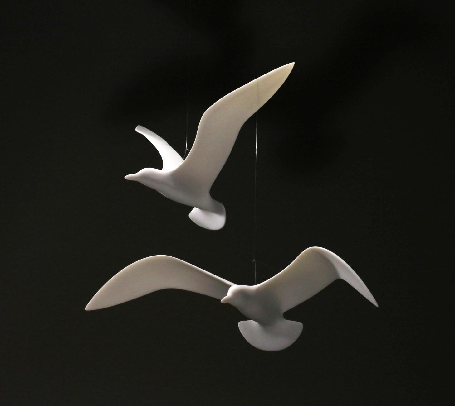 The wingspan of the birds is 15 inches. They are molded in Pellucida, our proprietary compound of resins that is similar to translucent Bisque porcelain, but more durable. One of the pair is SIGNED and the pair comes with a CERTIFICATE OF AUTHENTICITY.