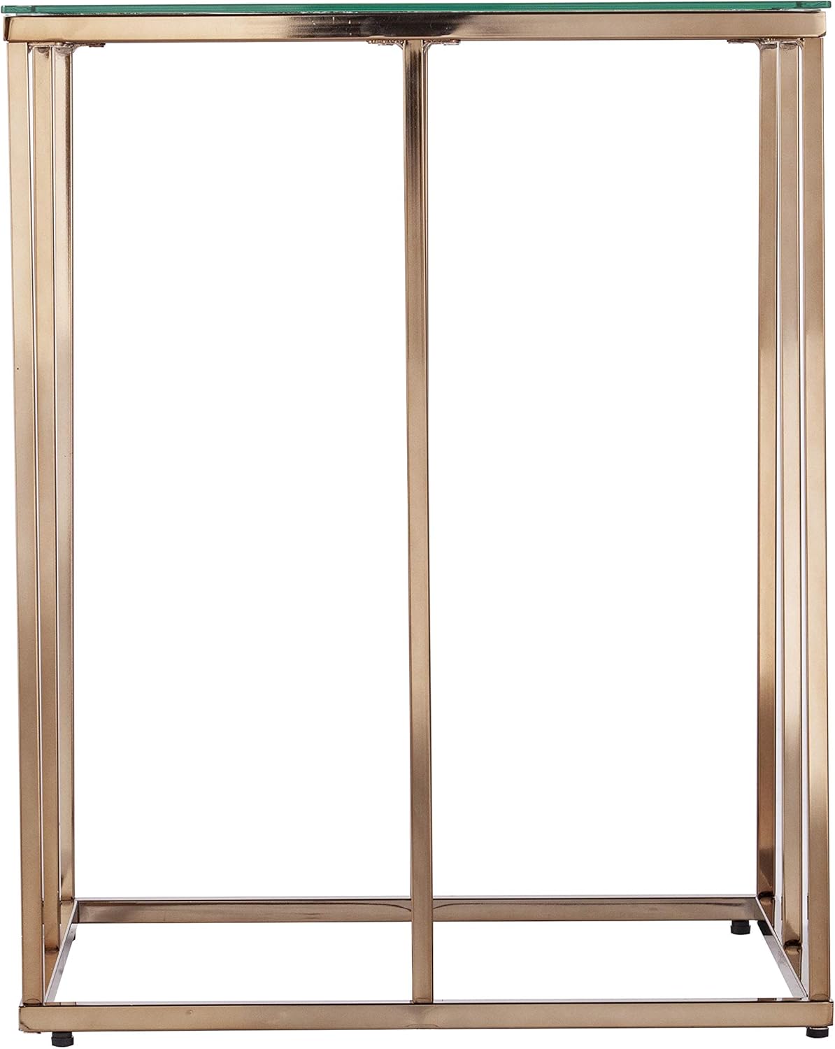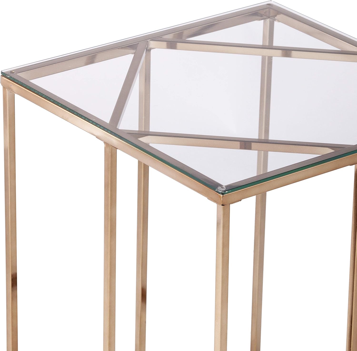 Uncover a hidden style gem with this modern accent table. A diamond-patterned frame supports a spacious glass tabletop, displaying your potted plants or family photos. The geometric, open base adds modern flair to your home décor, while the sleek profile and small footprint allow this glass and metal end table to slip into small spaces. Upgrade your at-home style with a pair of these glass-top end tables framing your living room sofa, or place as a multipurpose standalone in your open concept living space.