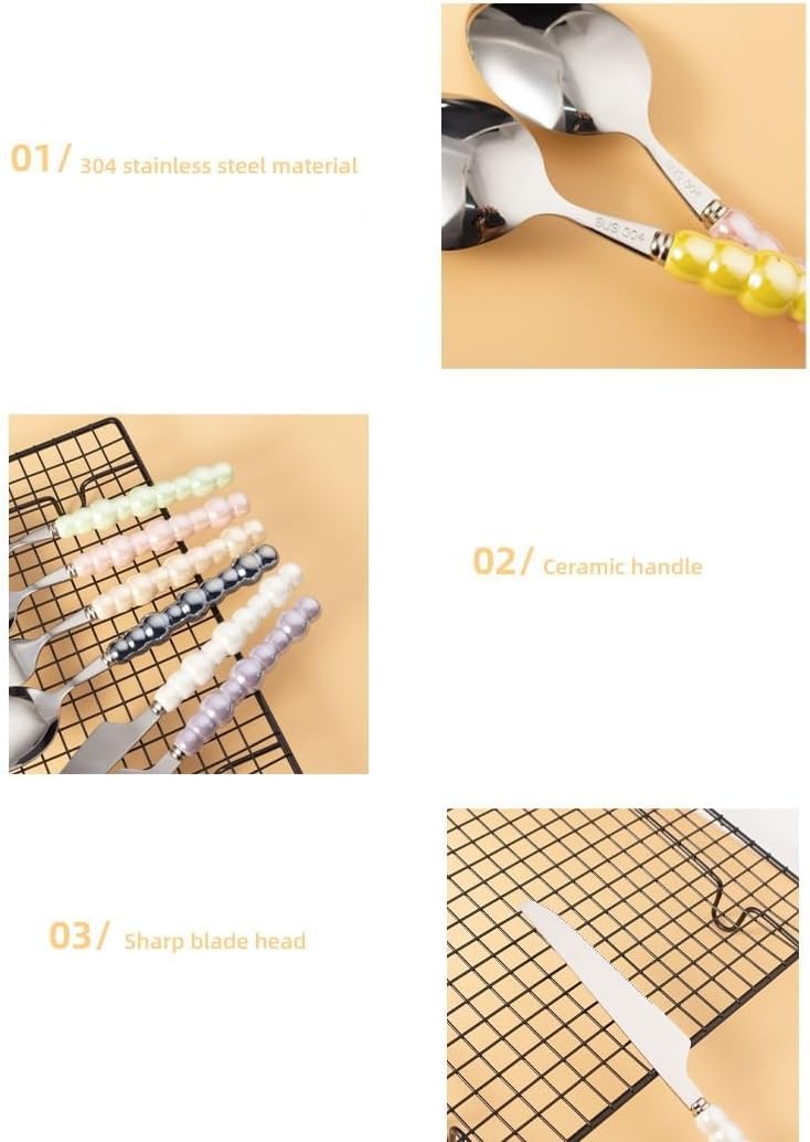 Product Category: Knives and ForksItem number: Pearl ceramic handleMaterial: Stainless steelPolishing process: Cloth polishing (mirror polishing)Applicable objects: AdultsStainless steel material: 304 stainless steelProduct quality level: qualified productStyle type: simple style.About our brandOur brand is HIDEERPPY. We have always been committed to household and kitchen supplies. Make every effort to bring more practical and creative products. Just to improve the quality of life for our customers.