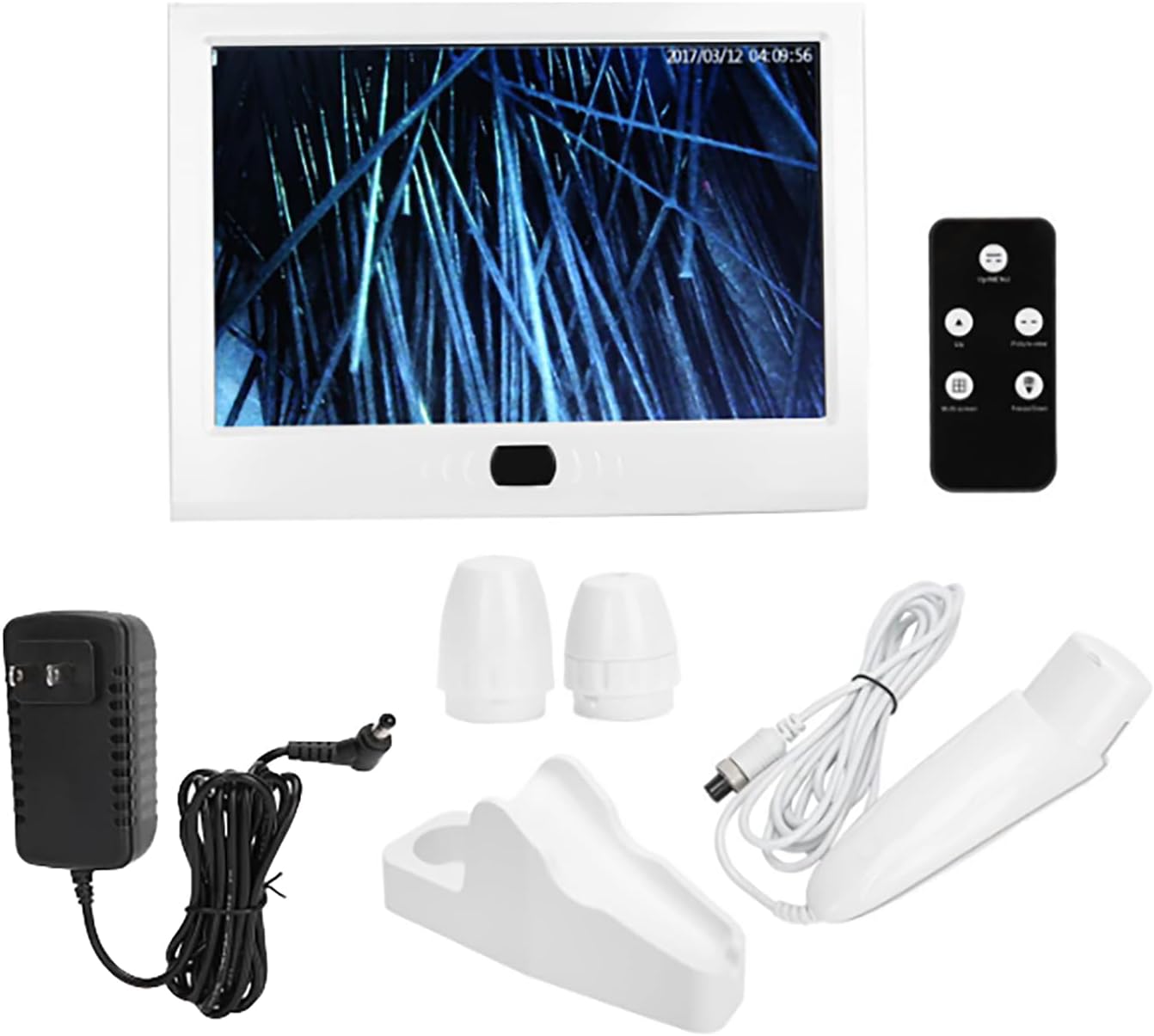 ★ Product Name: 13-Inch Skin Hair Detector Function: Skin Detection, Hair Detection, Hair Follicle Detection, Scalp DetectionDisplay Size: 13 InchVoltage: 110V-240VRated Power: 24WLens: 50X Lens + 200X LensThree Spectrum Detection: YesFour-Grid Comparison: YesStorage Capacity: 4GB50X Lens: Main Tests Pimples / Oil / Dry Skin, Sensitive Pimple, Pigmentation Distribution.200X Lens: Main Tests Scalp Bacterial Erythema / Hair Follicle Blockage / Oil Secretion Is Too Strong.Applicable Scenarios: Hair Salon/Barber Shop/Hair Care Center/Beauty SalonScreen Size: 260*160mmLanguage: Chinese/EnglishBody Size/Weight: 30*22.5*8.5cm/1.32kgOuter Packaging Size/Weight: 35.5*27.5*14.5cm/1.94kg★ Packing List:Main Machine*150X Lens*1200X Lens*1Instrument Handle*1Remote Control*1Charger*1Instruction Manual*1