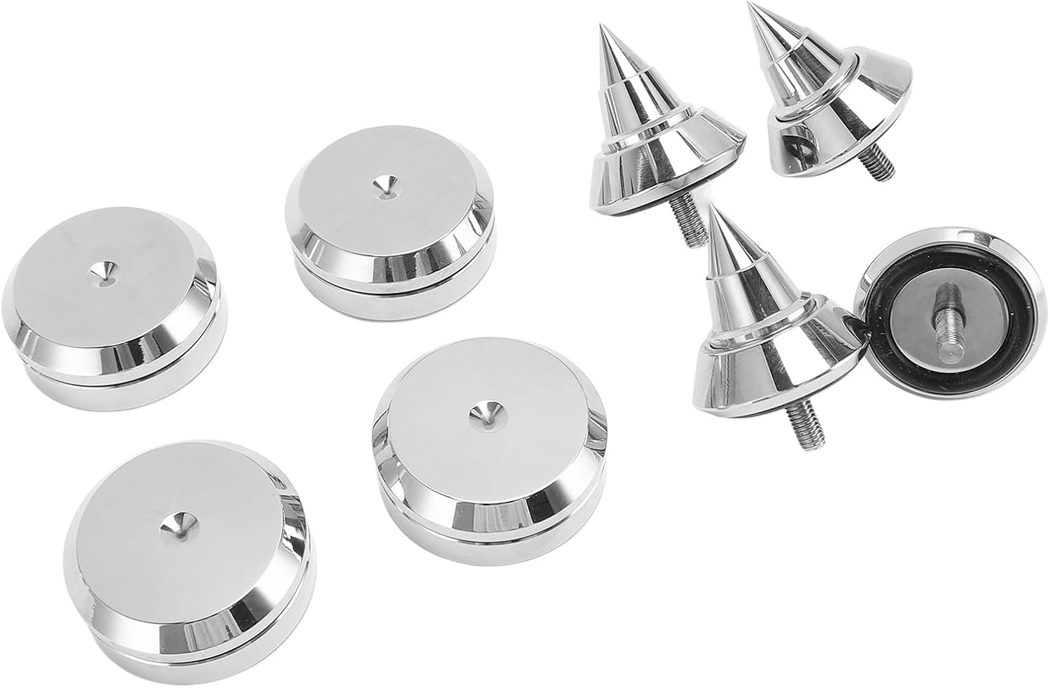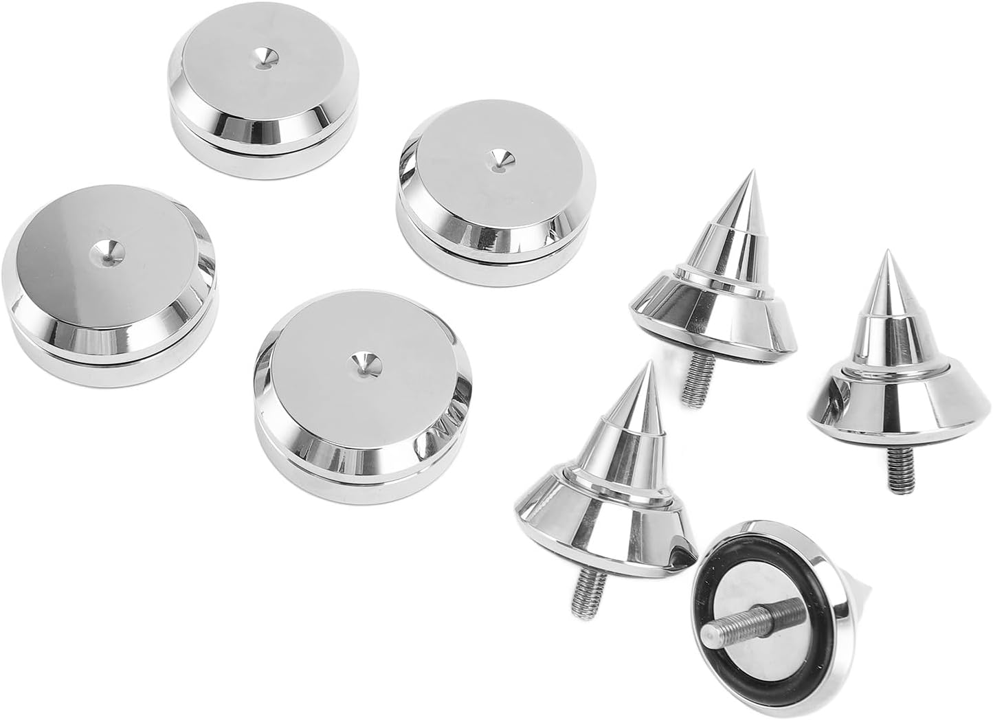 [PREMIUM MATERIAL] Crafted from high hardness aluminum alloy, these speaker isolation spikes offer superior density and low harmonic vibration for exceptional sound clarity. The silicone components further enhance damping to minimize unwanted noise and vibrations.[ENHANCED SOUND QUALITY] Experience richer bass and crisper highs with our thick density isolation feet. The unique design expands soundstage width while maintaining balanced three frequency equalization for a truly immersive audio experience.[EFFORTLESS INSTALLATION] Featuring M6 threaded mounting, these spikes install in seconds without drilling. The secure fit effectively isolates your equipment from damaging vibrations while maintaining stability on any .[SUPERIOR VIBRATION CONTROL] Our scientifically designed spikes suspend acoustic feedback to dramatically reduce vibration transfer. Enjoy purer, more focused sound with reduced distortion and noise interference.[VERSATILE COMPATIBILITY] for enhancing performance of speakers, amplifiers, turntables, CD/DVD players, and other audio equipment. The universal M6 thread ensures compatibility with most professional and home audio systems.Spec:Item Type: Speaker Isolation FeetMaterial: Aluminum Alloy, SiliconeColor: SilverThread: M6Scope of Application: for CD, DVD Player, Vacuum Tube Amplifier, Speakers, Etc. Package List:4 x Shock Absorbing Feet Base4 x Shock Absorbing Feet Top Cover4 x Feet SpikeNote: