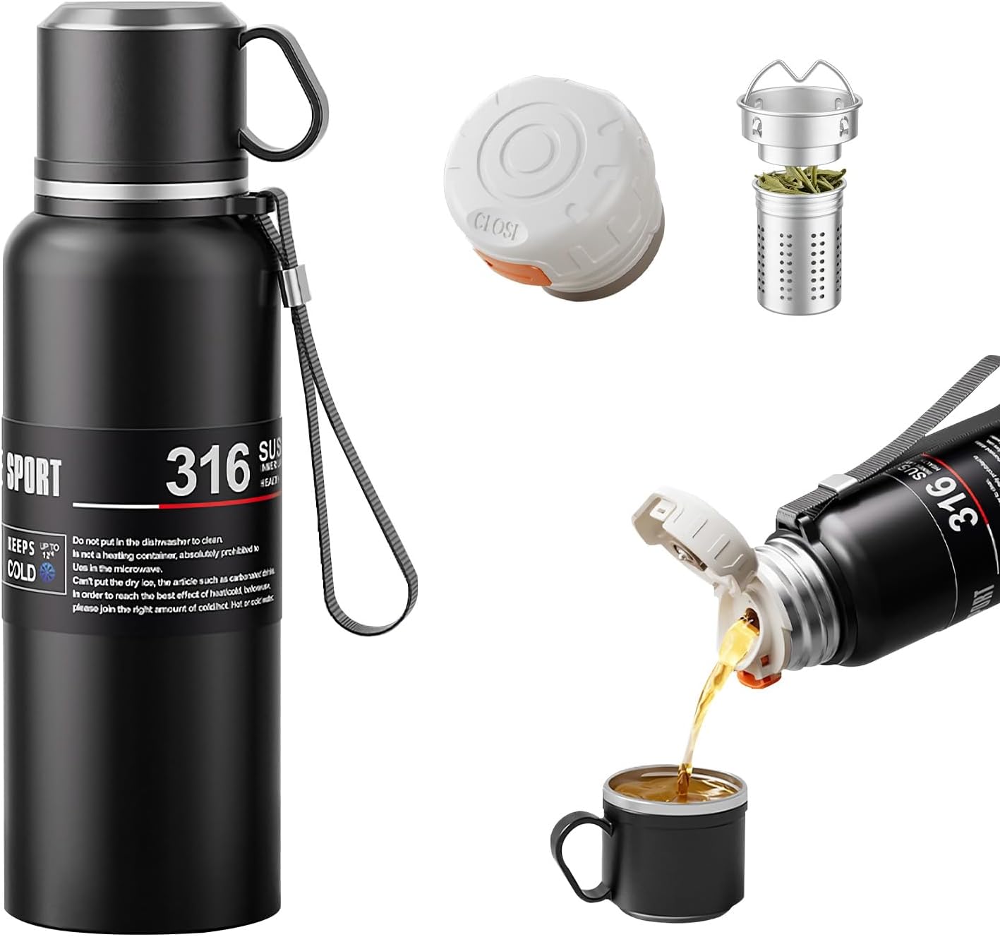 Stainless steel Vacuum Thermoses Bottle With Tea Infuser & Cup ,Double Layer Insulated Coffee Bottles for Hot and Cold Drink Water Flask