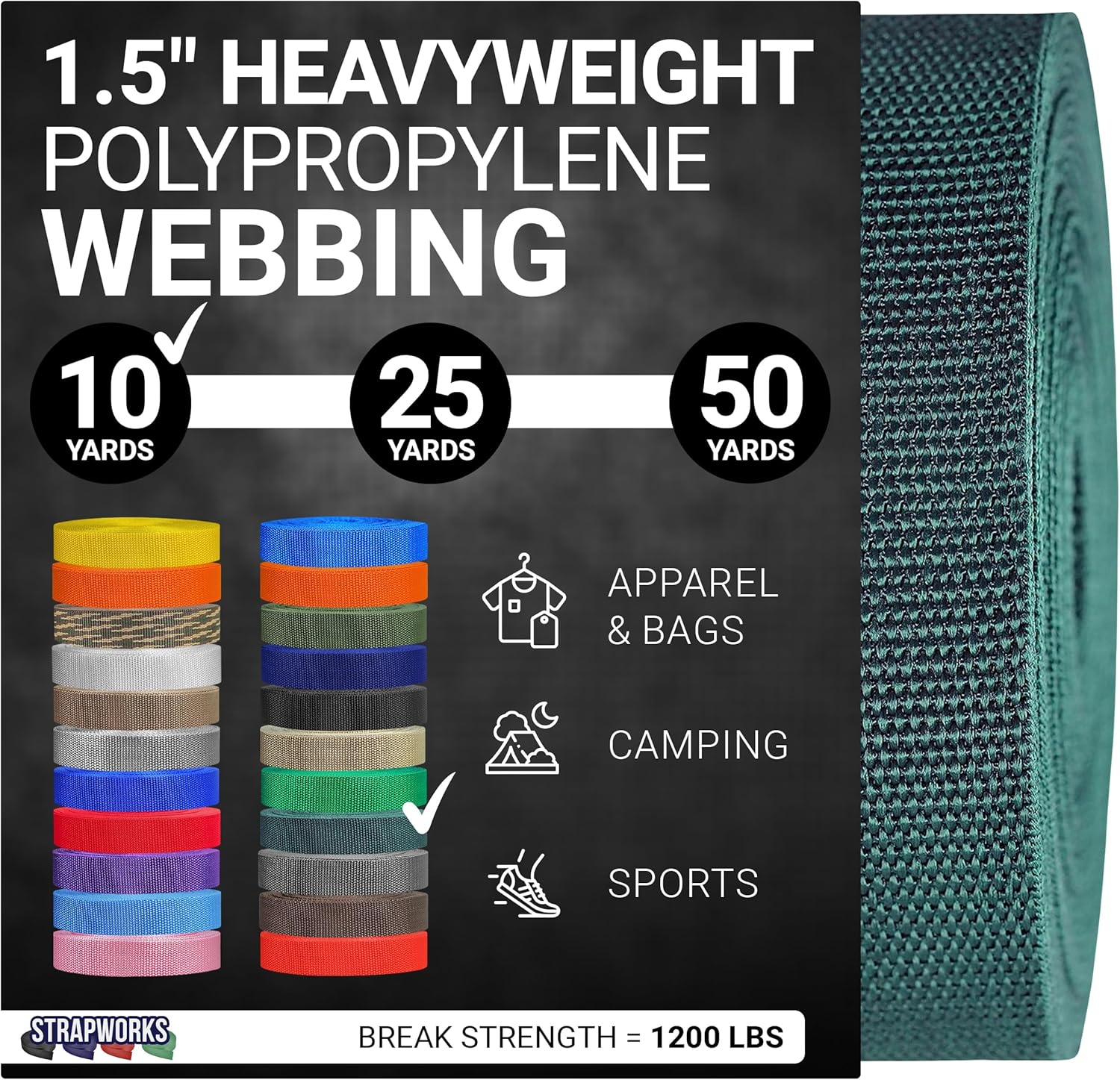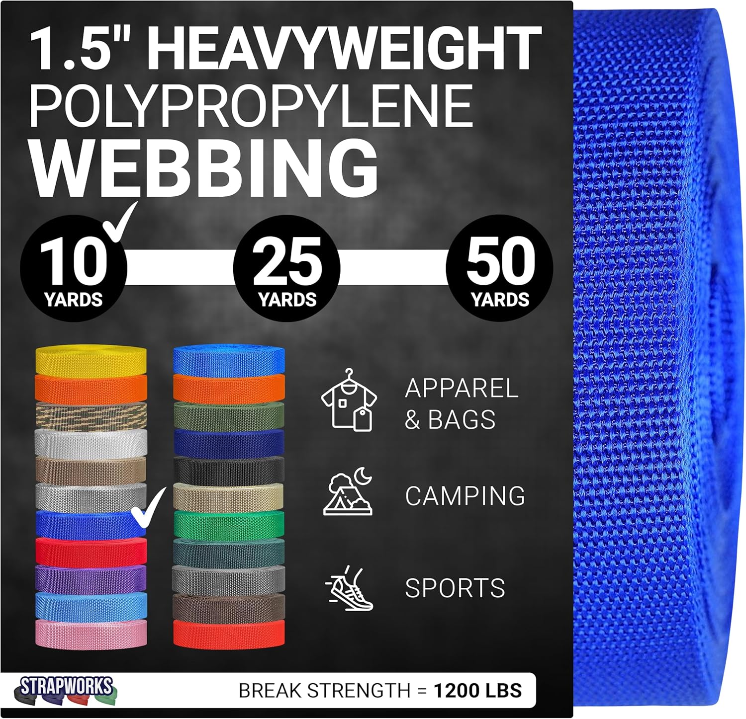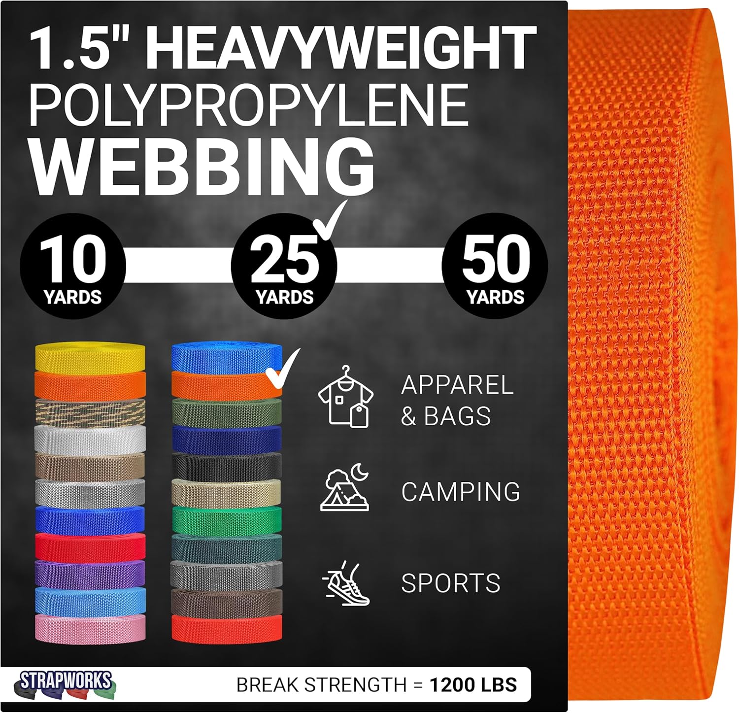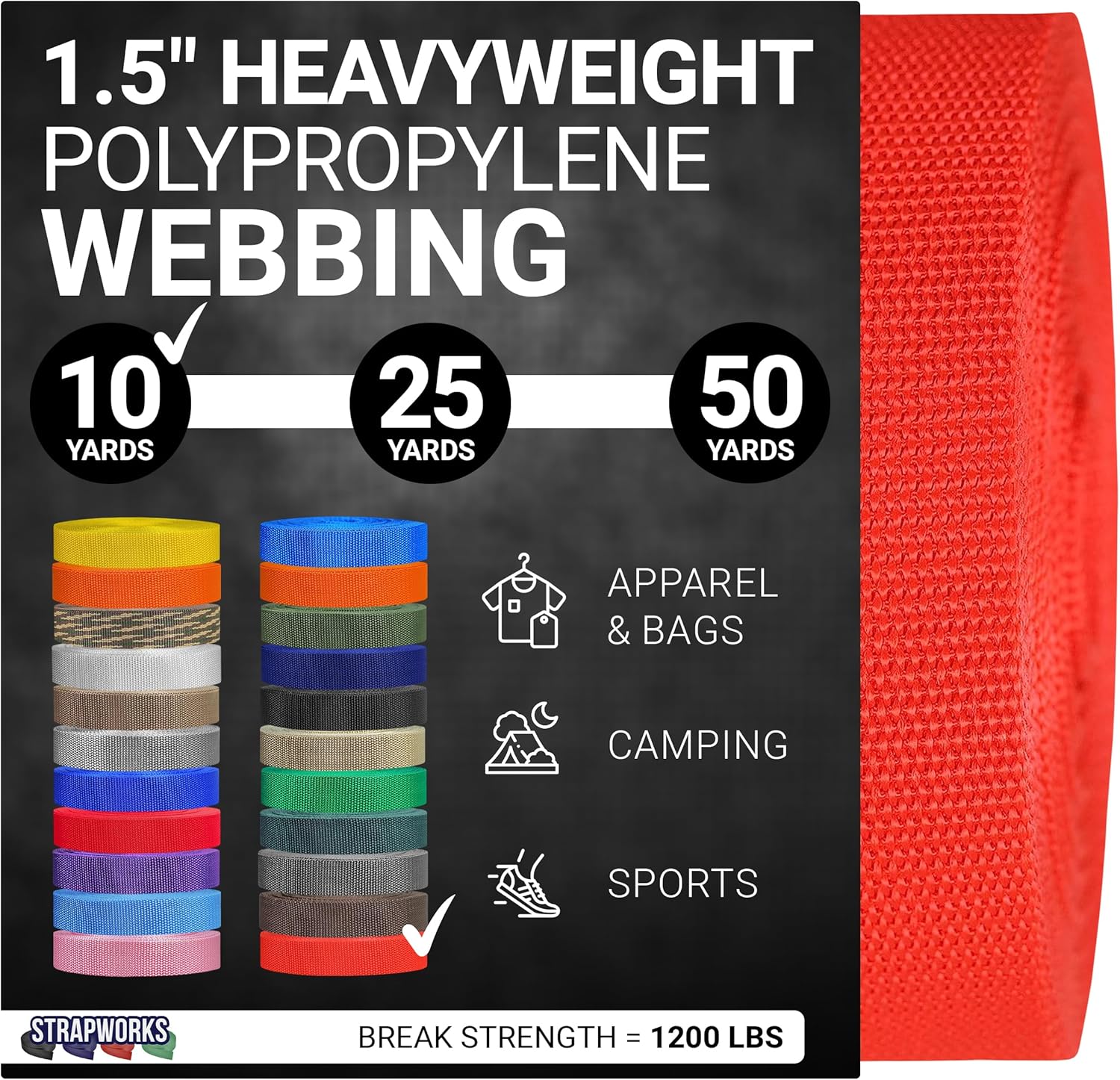 Strapworks Heavyweight Polypropylene WebbingWhen you need strength, durability and versatility, choose polypropylene webbing from Strapworks. Polypropylene webbing is available in many colors in both lightweight and heavyweight varieties. While the varieties of polypropylene vary in thickness and strength, all types are mold, mildew, moisture and rot resistant. A Favorite Among Outdoor Enthusiasts This webbing is an excellent choice for many outdoor activities. Use this strapping for tie-downs and cargo straps. Take it with you when camping, climbing, boating or rafting.Great for DIY Arts and CraftsTake your craft project to the next level by using this heavy duty webbing. Create handcrafted belts, slides, cams, or ratchets. Use it to make a unique dog leash, guitar strap, replace a purse bag strap, or repair your lawn chair.Why Choose Strapworks?We pride ourselves in being the only US based manufacturer truly offering strap customization from quantity 1 to over 100,000 and anything in between for everyone, business or individual. Strapworks offers the widest selection of webbing sizes and colors, all shipped to you faster than any other supplier. Over the years we have worked with customersin every industry, on every continent, and even in space! Strapworks really is the expert in straps, in business since 1999.