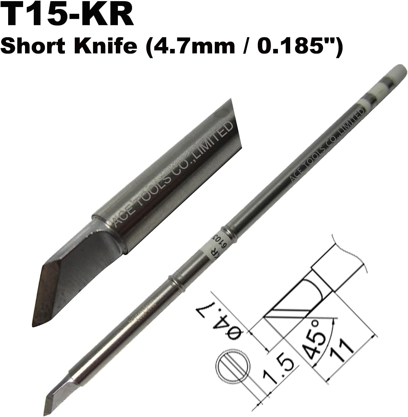 Name: T15-KR T12-KR Short Knife 0.185" / 4.7mm Soldering Tips Replacement Tips Replacement Soldering Tips for FX9501 FM2028 FM2027 FM2021 FX950 FX951 FX952 FM202 FM203 FM204 FM206, These are our Own brand "ACE" but Not "HAKKO" brand. Usage: This shape like a knife and is used for soldering at narrow pitches, correction of bridging and drag soldering. Warranty: We will agree to return tips and full payment refund when if you don't satisfy the tips even After Use