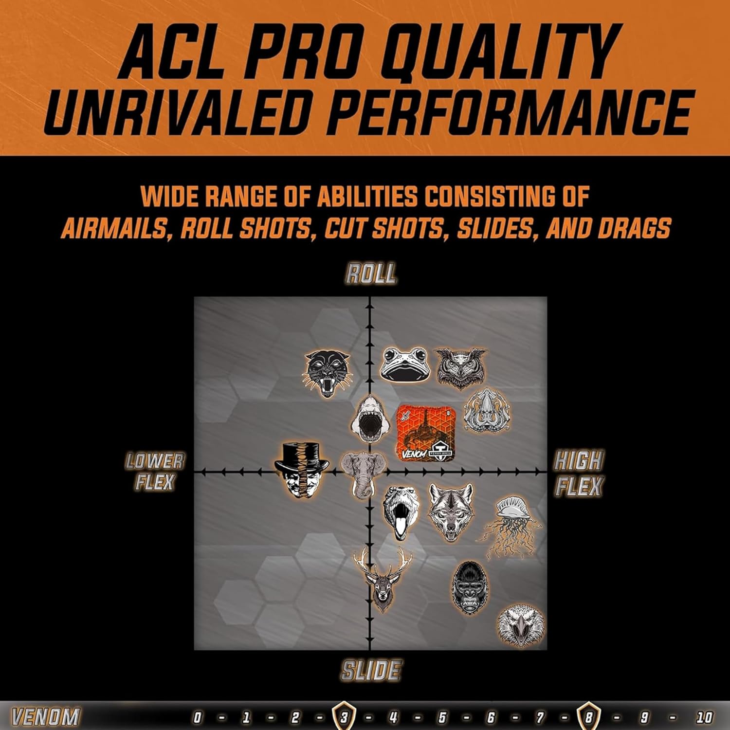 The Venom, ideal for hole-friendly plays, excels in break-in and versatility. Its slow side is perfect board game for strategic blocks and setups, while the fast side enables pushing and precision. Suitable for pros and novices, it supports various throwing styles. Unleash the ultimate family and sports experience with our professional set of 4 cornhole bags, designed to bring a competitive edge and fun to every toss game. These bean bags for cornhole game offer an exceptional blend of durability and playability for both indoor and outdoor settings. Whether you're planning a a serious sports competition, our corn hole bags are tailored for every occasion. With a focus on quality, our cornhole bags feature custom, vibrant designs and are made with durable materials that ensure longevity and consistent performance. The innovative dual-sided design provides a strategic advantage, catering to professional-level play. Our game-changing equipment is a testament to a decade of innovation in the cornhole world, making it the ideal choice for enthusiasts looking for good quality bean bags, boards, and accessories. Whether it's a sunny day outdoors, our set is a versatile addition to any sports equipment collection, promising engaging activities and memorable cornhole board games for friends and family alike.