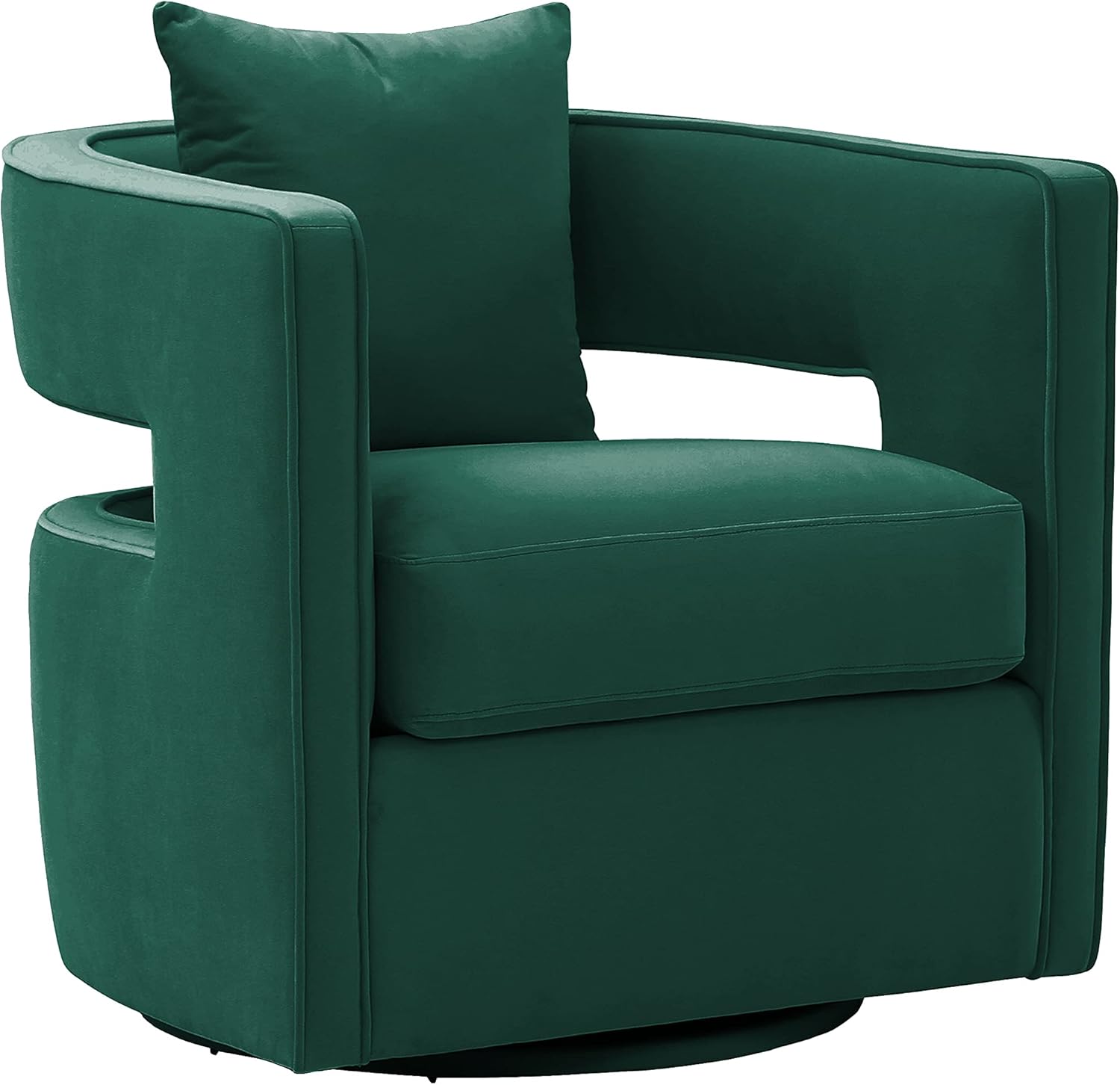 TOV Furniture presents the fabulous Kennedy collection, featuring some of the highest quality and most aesthetically pleasing accent chairs upon the current market. Sensationally designed, the Kennedy accent chair is an inevitable point of prominence amongst any contemporary setting. The armchairs are flawlessly constructed with a supportive 360-degree swivel base. Each swivel chair with arms measures 30"W x 31"D x 28"H, weighs 60 lbs, and does not require assembly upon delivery. The living room armchair is diligently handcrafted with a pine wood frame upon a stainless steel swivel base and a refined upholstery of plush velvet. These accent chairs are fashionably modern with a vivid versatility that will radiate throughout any sophisticated office or living room. TOV Furniture was established upon a vision to create a distinctively elegant yet pleasantly affordable furniture company. Led by formidable industry veterans with unique design insights and nearly two decades of experience in every phase of the business, this vision has come to fruition.