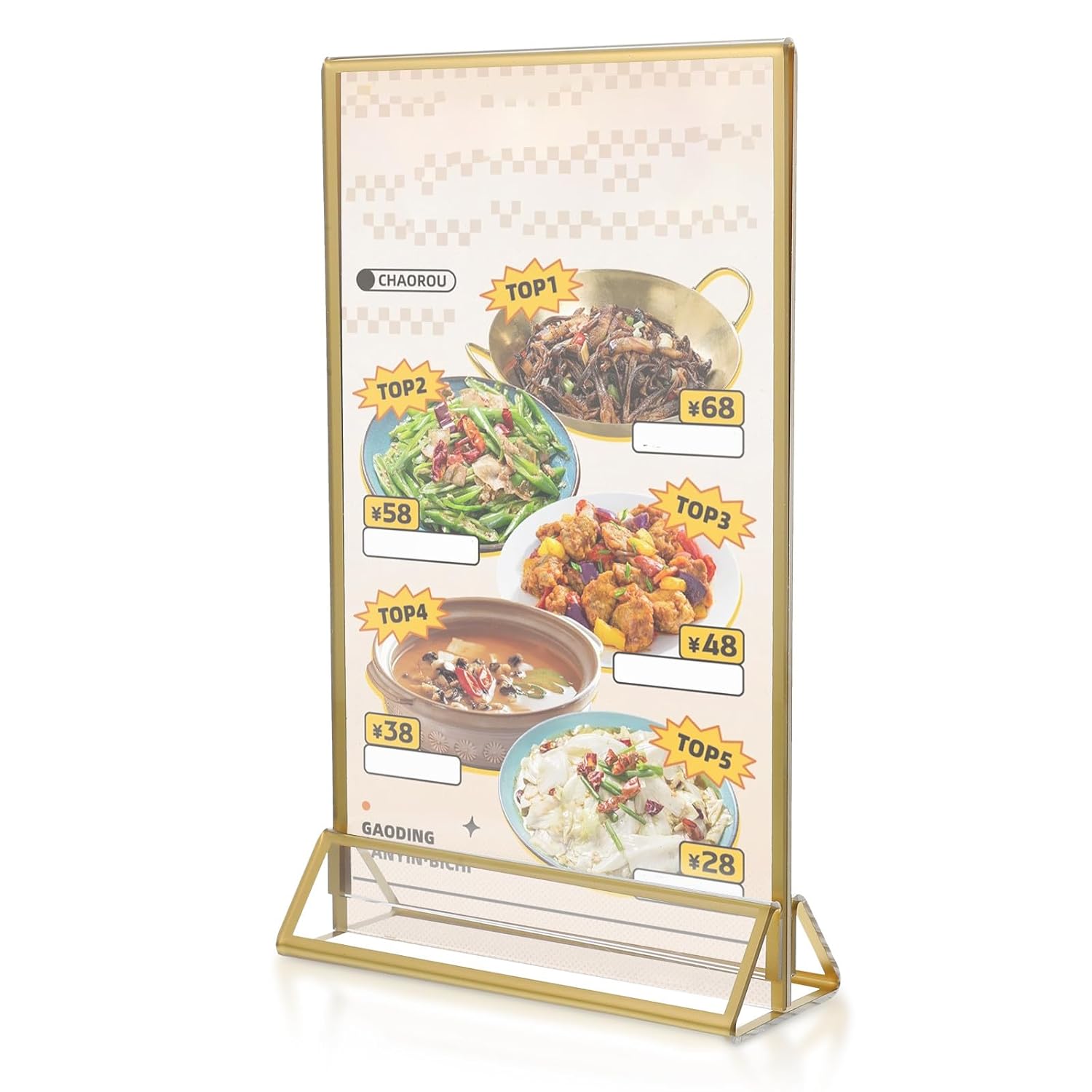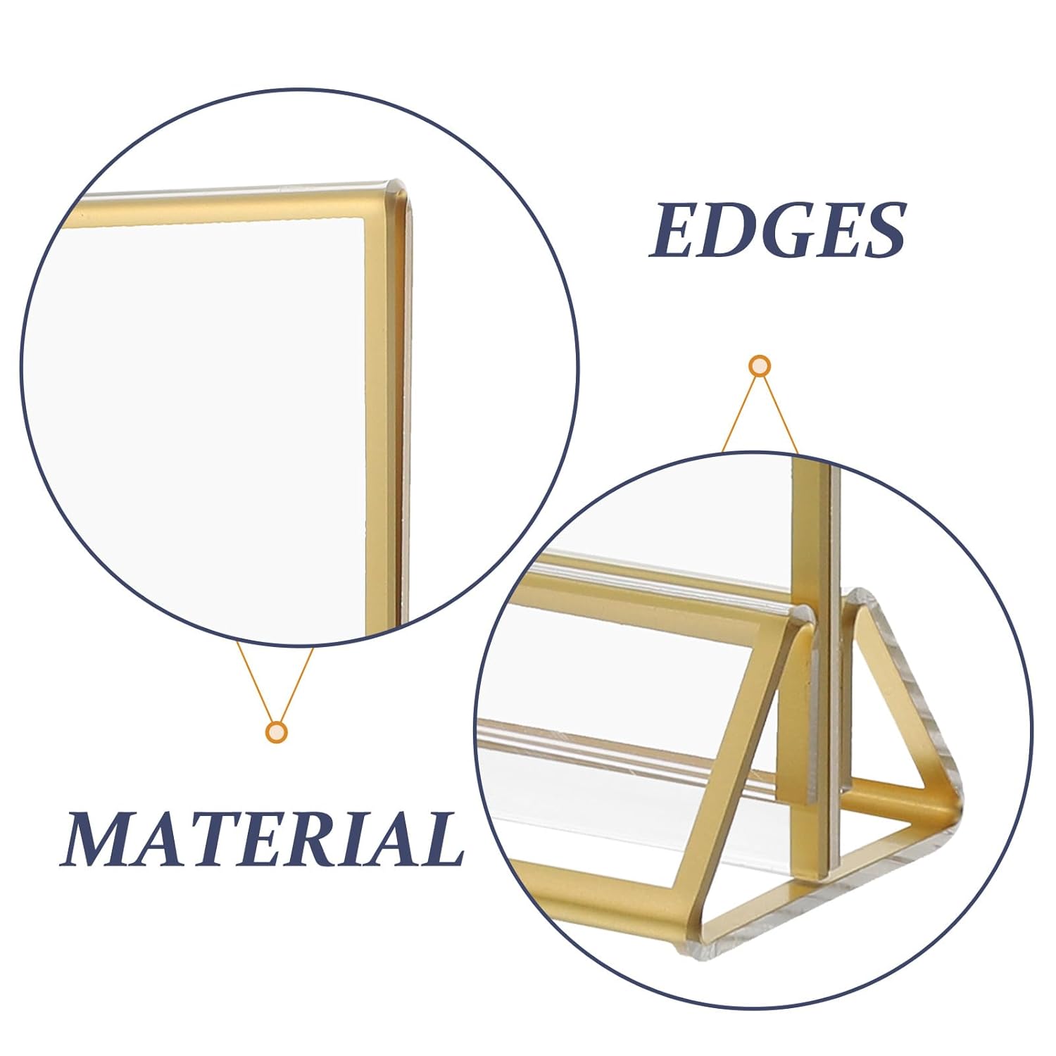 Package Include 6 x Menu Holders Features -Material:Acrylic -Size: 18.00X10.70X4.30cm/7.07X4.21X1.69in -Product Info:Wine brand -Color:Golden - Easy to put into menu, clear display restaurant menu, suitable for various commodities store restaurant sign holders. - Suitable for busy and events, and can be easily and compactly stored even after use tabletop sign holder. - Can be used at stores, offices, restaurants, supermarkets or other shopping centers clear photo frame. - The material is safe and light, which is wear resistance and practical for the lasting time use. - With a stable design that be stable to shelves and tags, the stable sign holder can be reused wedding signs holder.Goods Informationclear poster menu holders for office Simply slide out the card to update or replace it with ease.restaurant sign stand Featuring a pull-out design, the Acrylic Gold Edge Table Card Display Stand ensuring quick and effortless use.menu stand The not only provide a luxurious touch but also make the stand stand out in any setting