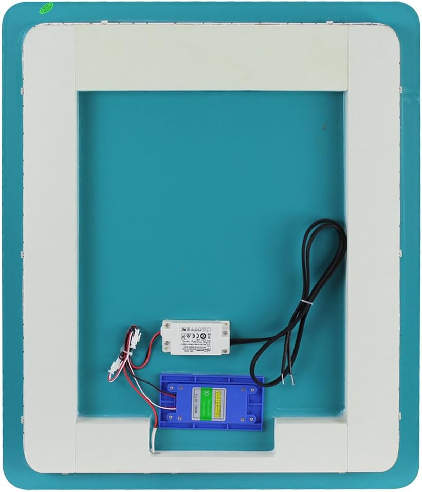 SUPERIOR QUALITY - 5mm wall mirror made with premium materials. HIGH EFFICIENCY LIGHTING - Illuminated Energy Efficient Back LED White lighting with approx. 50, 000 hour lifespan, 15W, and 120v. ADAPTABLE - Can be wired to a wall switch or touch on/off sensor located on mirror. APPLICATIONS - This versatile mirror provides clarity and shows your true skin tone. It is perfect for cosmetic and makeup use and can be placed in your bedroom or bathroom. SAFETY - UL recognized components provides a safety standard for components used in the final product so you know this mirror is safe for everyone to use. SECURE PACKAGING - Mirror comes securely packaged to ensure your product arrives in pristine condition. HARDWARE INCLUDED - Easy Installation and includes power supply and mounting hardware. Requires hard wiring. DIMENSIONS - 19. 69 X 1. 18 X 23. 62 Vertically Mounted.