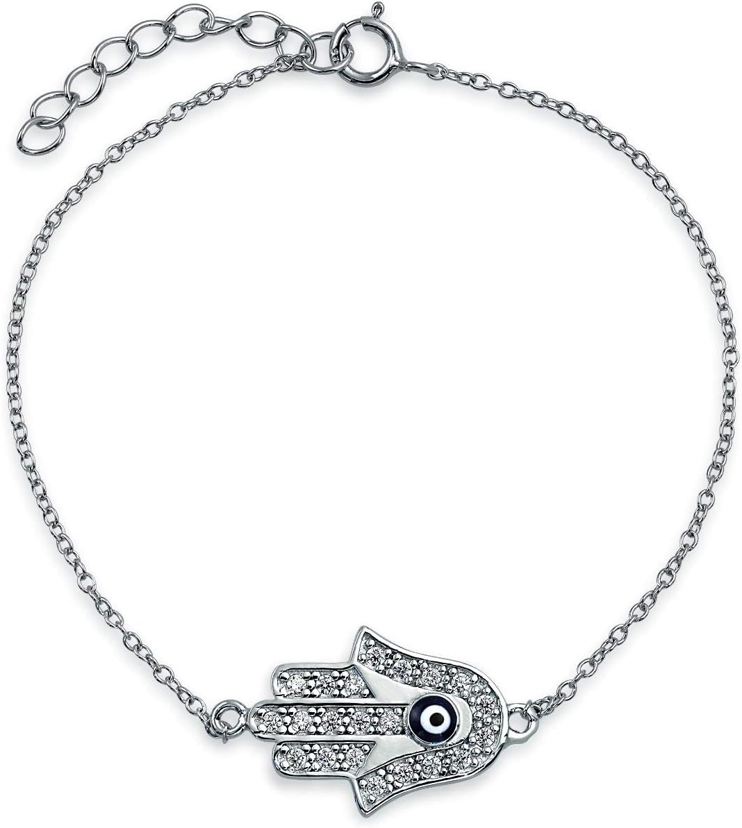 Comfort, charisma, and charm make this Evil Eye bracelet irresistible. The Hamsa Motif wards off negativity and attracts positive energy. You won't want to take off this stylish bracelet. Feel the difference and share the Hamsa Evil Eye bracelet with a friend. Made from quality sterling silver. Order your Sterling Silver Hamsa Bracelet today!