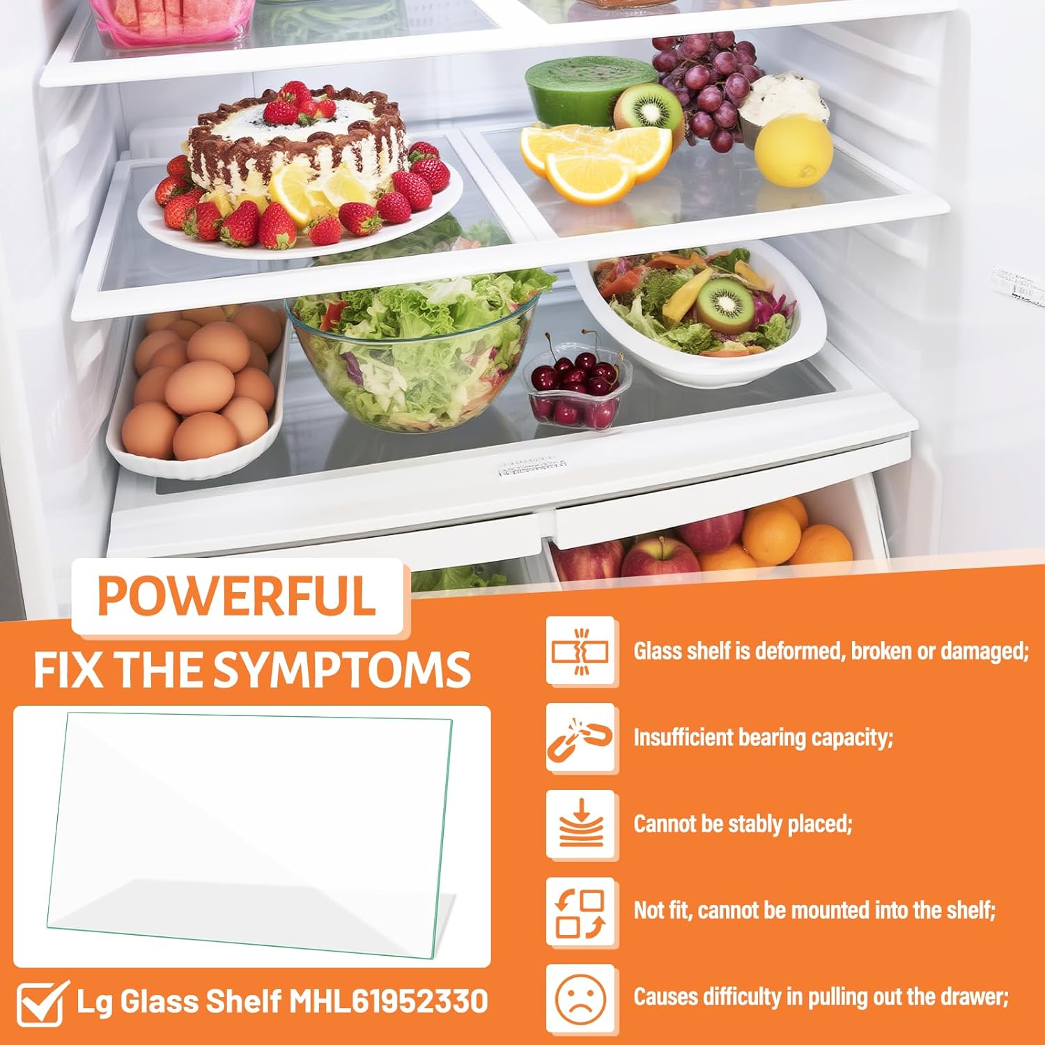 | Included Components | 1x MHL61952330 Fridge Glass Shelf Replacement For LG Refrigerator Shelf Glass |
