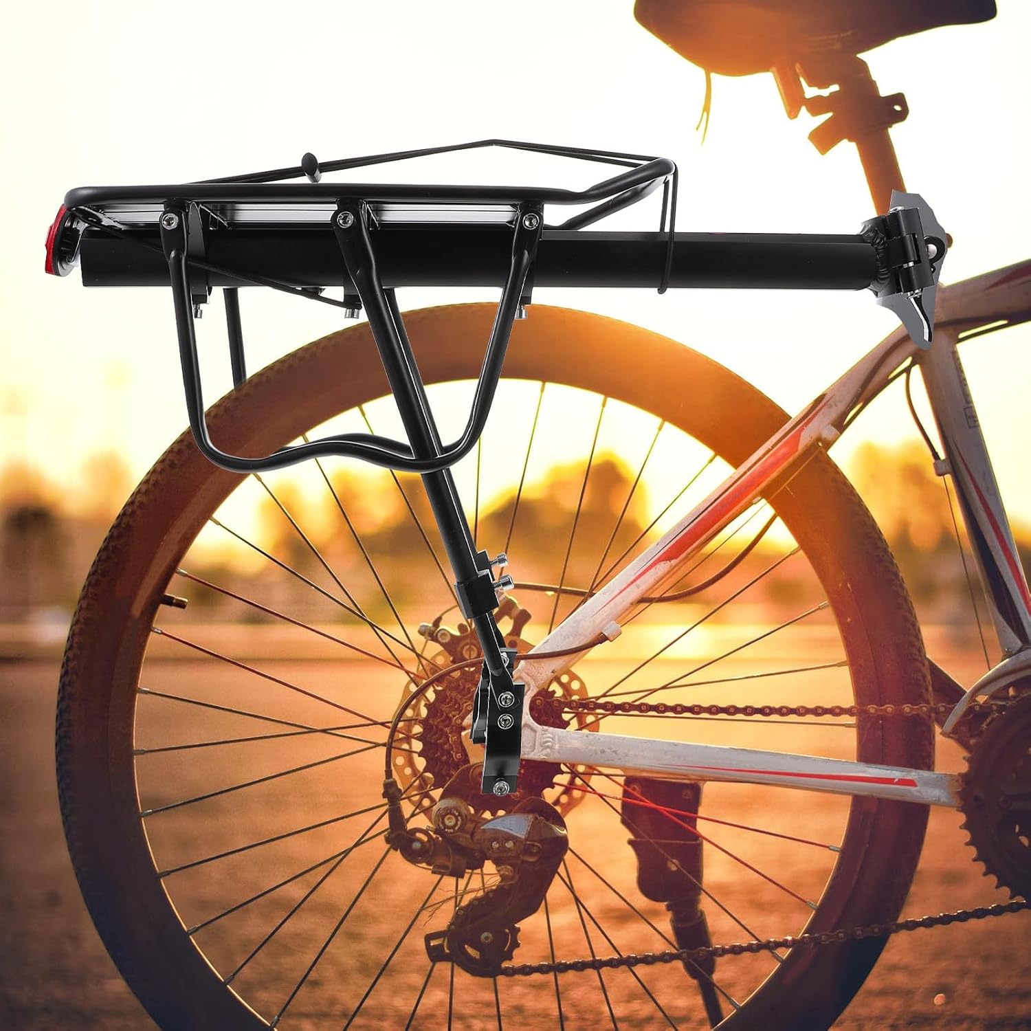 Package List 1 x Bike Rear Rack Features -Material: Aluminum Alloy -Color: Black -Size: 52.50X35.50X14.20cm/20.63X13.95X5.58in -Product Info:Quickly disassemble the rear shelf -Lightweight and compact design for easy transportation, achieving no more weight added Mountain Bike Tail Rack. -The bike rear rack is a perfect accessory for folding bike, you can use it to store necessities Bike Rear Storage Rack. -It is made of high-strength aluminum alloy material, the rack is practical, strong and durable. -The bike rear rack is , you can buy this practical product at an bike rear rack. -The method of installation it is simple, and the base is firm, which is very practical for cycling.Goods DescriptionBike Tail Cargo Rack Strong loading capacity, for carrying lots of things with you.Bike Rear Shelf Made of high-grade material, this cargo rack is durable and practical for use.bike rear rack Easy to install and remove, perfect for mountain bike, folding bike, disc brake bike, bike, etc