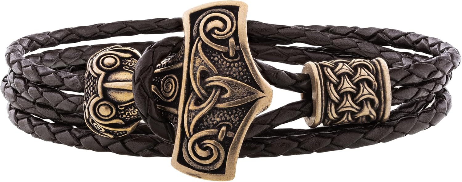 VIKING BRACELET WITH THOR'S HAMMER MJOLNIR PREMIUM MATERIAL - The Norse armband is made of high-quality, solid, and durable Italian Bronze PANDORA with a content of 88% Copper and 12% Tin. For the production of leather bracelets, we use only high-quality Spanish cords with a thickness of 3 mm. CARE OF HEALTH - Our Nordic wristband does not include harmful metals such as Lead, Cadmium, and Nickel, the content of which can adversely affect your health. DESIGN - We create Viking jewelry with love and admiration for the unique German-Scandinavian culture and mythology. All that we sell we create and produce ourselves in Ukraine. Our Mjolnir bracelet is unique and detailed. DAILY USE - The Viking armband with Thor's hammer fits perfectly into any clothes, does not cause discomfort or allergy, has a stylish design, and is suitable for daily use. EXCELLENT GIFT - Our Norse jewelry for men and women is an excellent gift for him and her for Birthday, Christmas, Father's Day, Thanksgiving Day, Valentine's Day, Anniversary and etc. WE GUARANTEE - that each of our customers will receive their order or a full refund. We ship worldwide by priority airmail (with tracking) from Ukraine. If your surfer bracelet was broken, it can be replaced within 3 months.