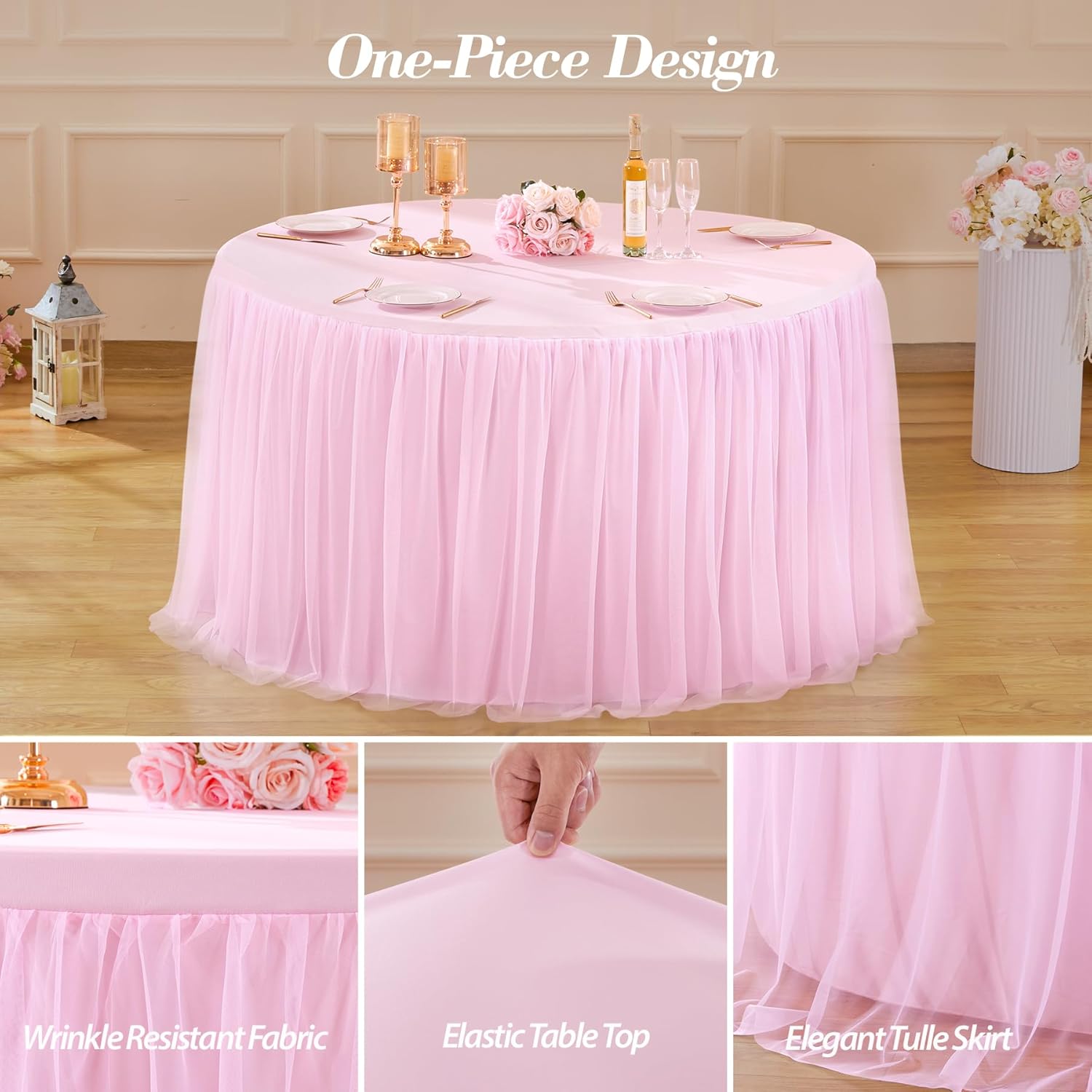 | Recommended Uses For Product | Buffet Table, Coffee Table, Desk Table Decoration, Dining Table, Gifts Tables, Cake Table, party tulle tablecloth, babay shower tablecloth, wedding reception table cover, birthday tablecloth, display table clothes, dessert pink tablecloth, round tables tablecloth |