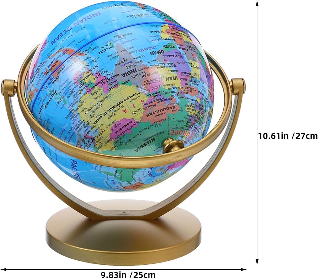 DescriptionElevate your workspace with this small desk globe, designed as a desktop globe for office or study. The decorative world map globe features intricate country markings and smooth rotation to encourage interactive geography learning. Its stylish, modern look offers world globe home decor appeal while serving as a desktop educational globes decoration and globe for office table.Features-Color:Blue-Material:ABS, PVC -Size:27.00X25.00X20.00cm/10.63X9.84X7.87in-Modern Office Aesthetics: The world map globe decoration introduces a stylish contemporary accent, working perfectly as office globe for desk or globe for office table to elevate your workspace ambiance-Fun & Educational Engagement: This educational globes decoration fosters curiosity and learning, making a small decorative globe that motivates users to interact and discover the world with ease-Compact and Portable: The small globe for office decor offers convenient mobility, letting you move your mini globe decorative easily for study sessions or as decorative world map globe wherever you prefer-Detailed Visual Reference: With finely printed country names, political outlines, and ocean locations, our decorative rotating globe is an excellent tabletop decorative world globe-Durability: Designed to withstand everyday handling, this small desk globe for office provides enduring value as home desk ornaments or decorative globe stand, ideal for regular study and display