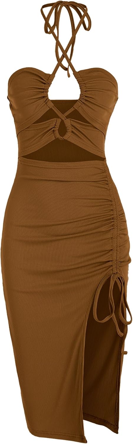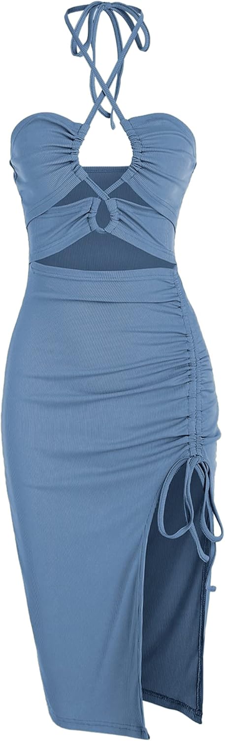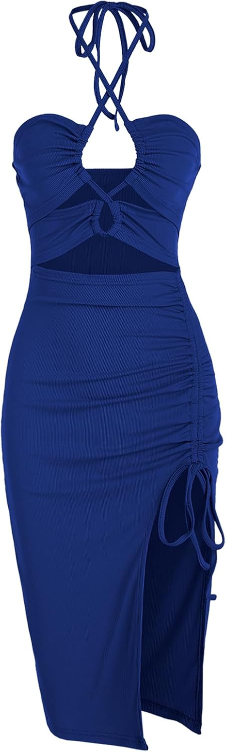 Women's Sexy 2Pcs Skirt Set SIZE CHART:Size-------Back Bust---Top Length---Waist------Hip-----Skirt LengthS(4)-----------14.17"----------6.30"-------25.20"----33.07"------25.20"M(6)----------14.96"----------6.69"-------26.77"----34.65"------25.79"L(8-10)------16.14"----------7.09"-------29.12"----37.01"-------26.39"XL(12-14)--17.32"----------7.48"-------31.50"----39.37"-------26.97"Style: Cute, SexyOccasion: Date Night,Going Out,Night OutMaterial: 92% Polyester, 8% Spandex Silhouette: Ruched Asymmetrical Skirt Length: Midi Top Neckline: Halter Sleeve Length: Sleeveless Embellishment: String,Cut Out Pattern Type: Solid Fit Type: Slim Waist: High Fabric Stretch: Slight Stretch Season: Summer With Belt: NoPackage Contents: 1 x Top,1x Skirt