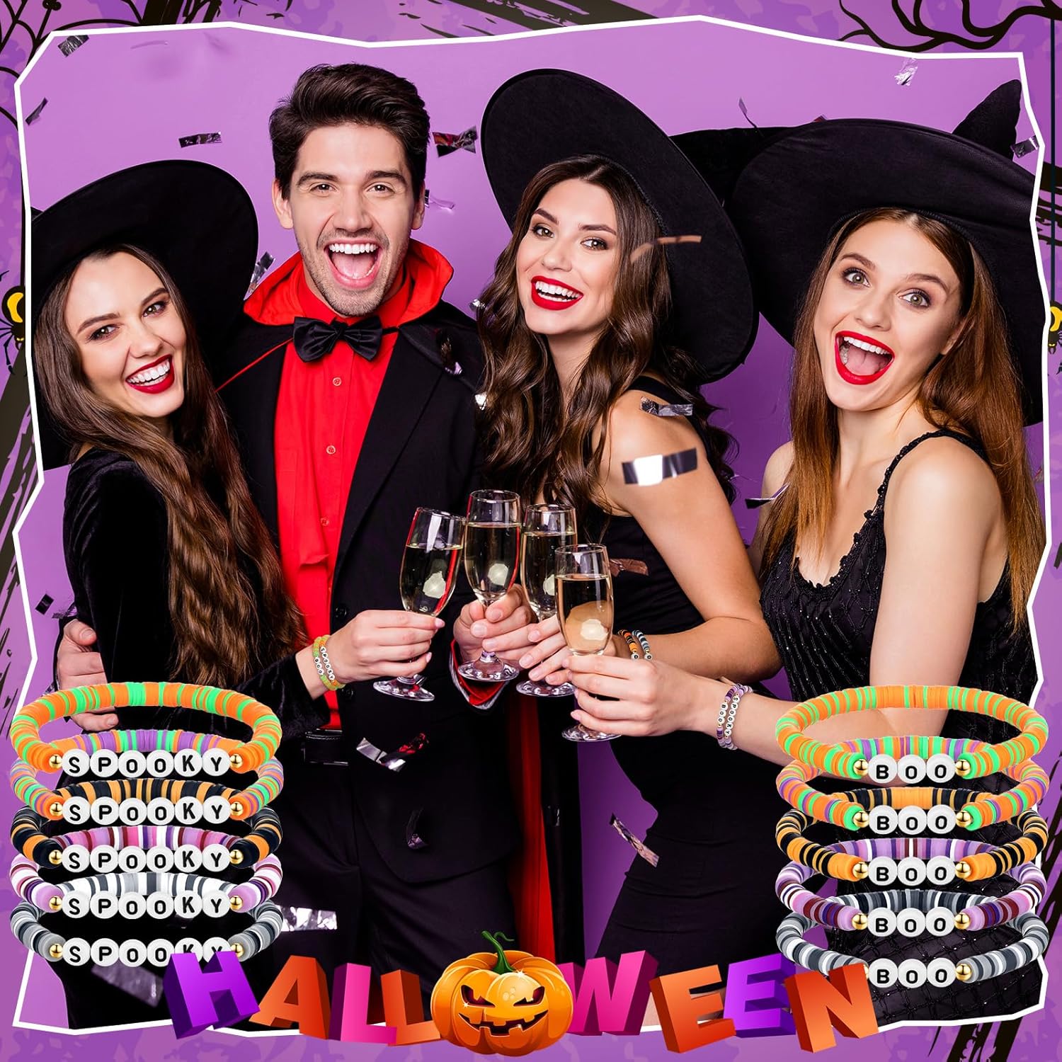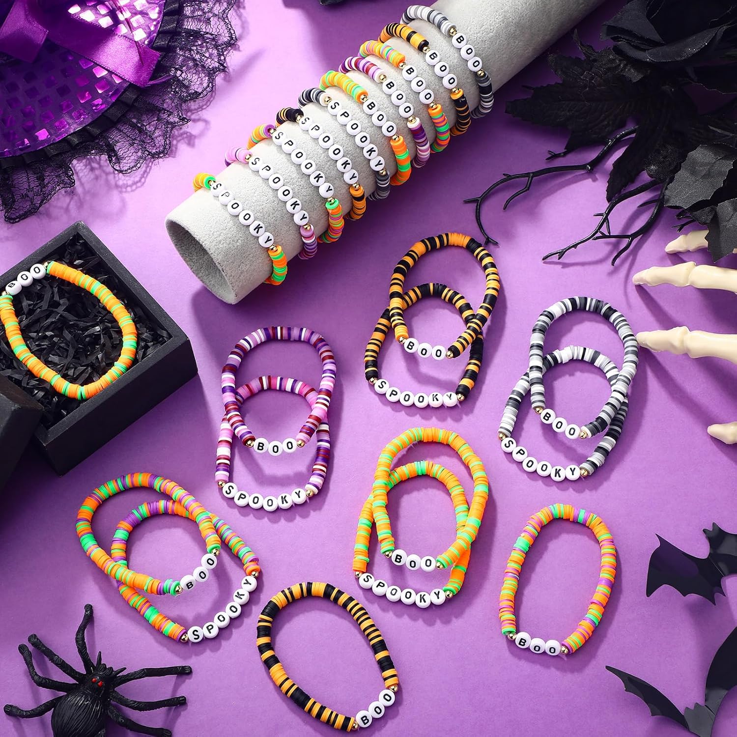 Features: This Halloween bracelet adds a touch of style and festive charm to any costume, making it the nice accessory for various holiday occasions. Suitable for Multiple Occasions: ideal for Halloween, Halloween Eve, this bracelet is a versatile choice for different festive settings. Wish you have a happy Halloween! Wear our beaded bracelet and celebrate the holiday with elegance and charm. Specifications: Material: polymer clay Color: purple, orange, gray, colorful and green Size: about 7.5 inches Package includes: 100 x Halloween bracelet Notes: Manual measurement, please allow slight errors on size. The color may exist a slight difference due to different screen displays.