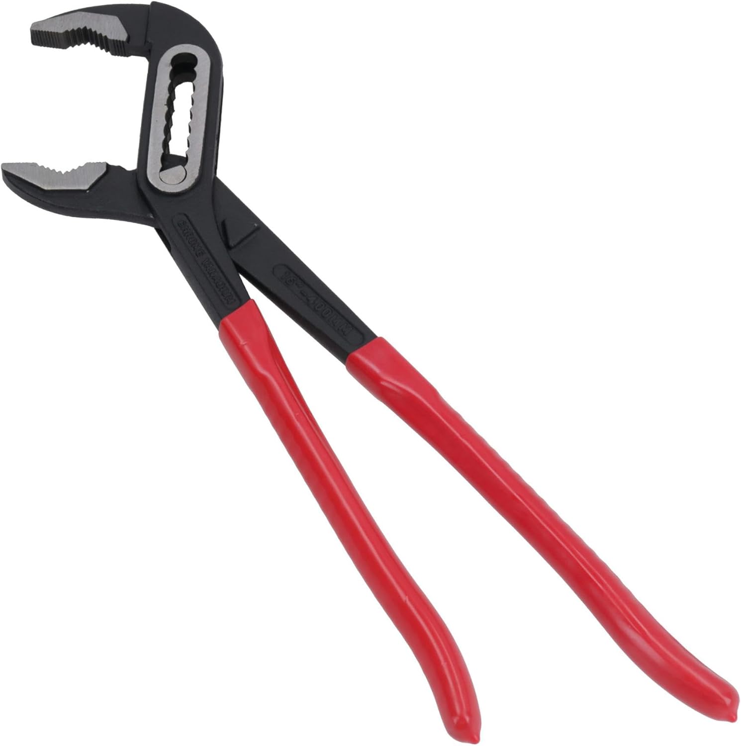 Manufactured from chrome vanadium. Hardened and tempered with black phosphate finish for corrosion protection Rubber grip handle for comfort and grip. Also ideal for pushing back tight brake callipers With correctly proportioned teeth and joints you will get massive grip from the pliers. Total length of the pliers 16" / 400mm so ideal for when extra leverage is needed. Maximum opening of the jaw 3" / 75mm Comes with a groove joint and multi position adjustment for different purposes.