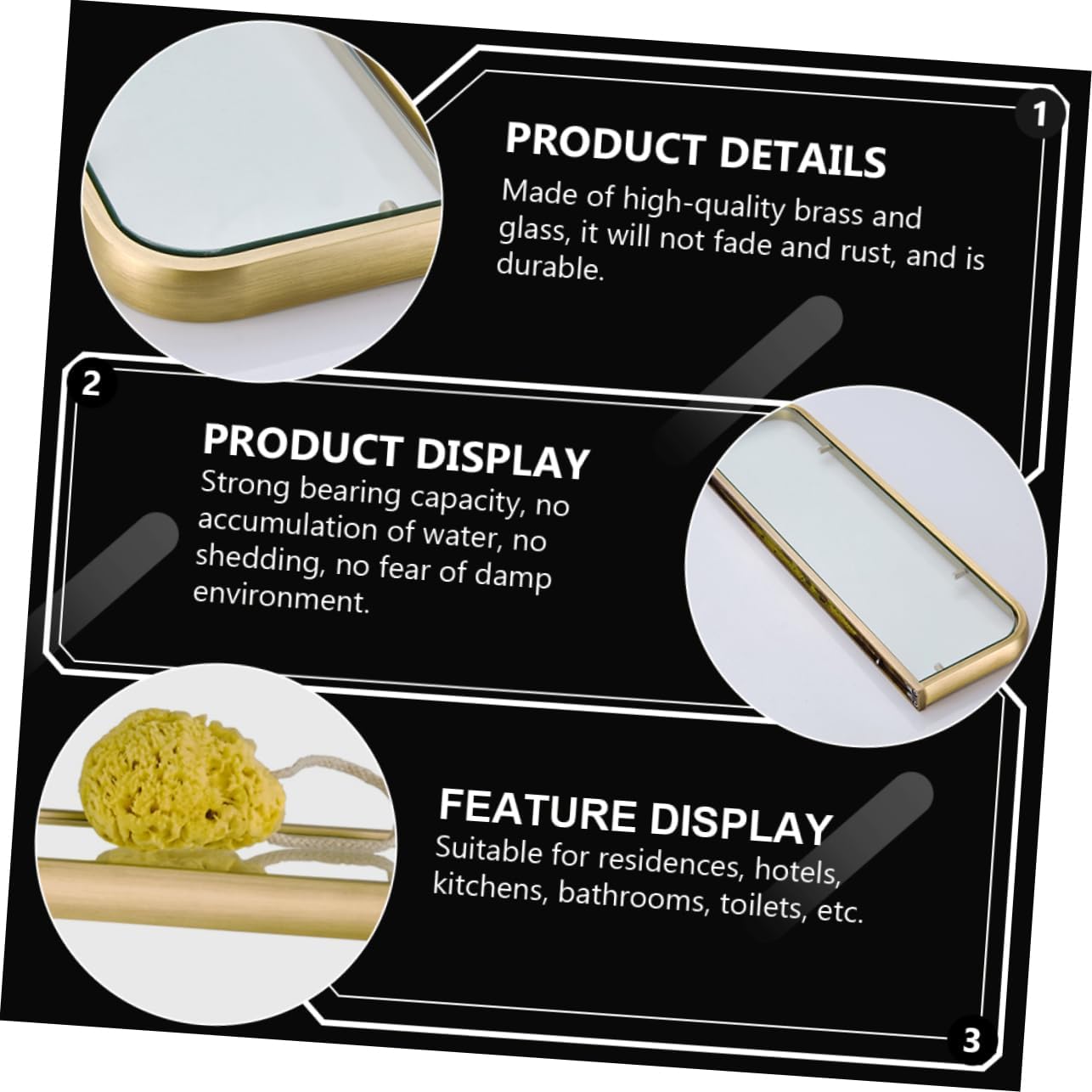 Package Include 1 x Shelf Features -Material: Brass and Glass Glass Storage Rack -Size: About 50.00X14.50X2.80cm/19.65X5.70X1.10in wall shelves for bathroom -Color: Light Brown,Bronzed bathroom shelves - It is and corrosion, ensuring durability and service life small bathroom shelf. - Made of high end material, which can be used for a long term. bathroom shelving - Easy to clean and maintain, just with a damp cloth. wall mounted shelves - Single-layer bathroom glass shelf with brass chrome-plated frame bathroom storage shelf. - Our bathroom shelves are suitable for indoor environments such as bathroom, toilet, kitchen, bedroom, study, living room toilet storage rack.Goods Informationbathroom shelves Use this wall hanging shelf to keep your space in order.bathroom storage shelf This product can be given as a to your friends and family.wall mounted shelves Apply to bedrooms, living room, kitchen wall.small bathroom is made from high grade material, and .bathroom rack Save precious storage space