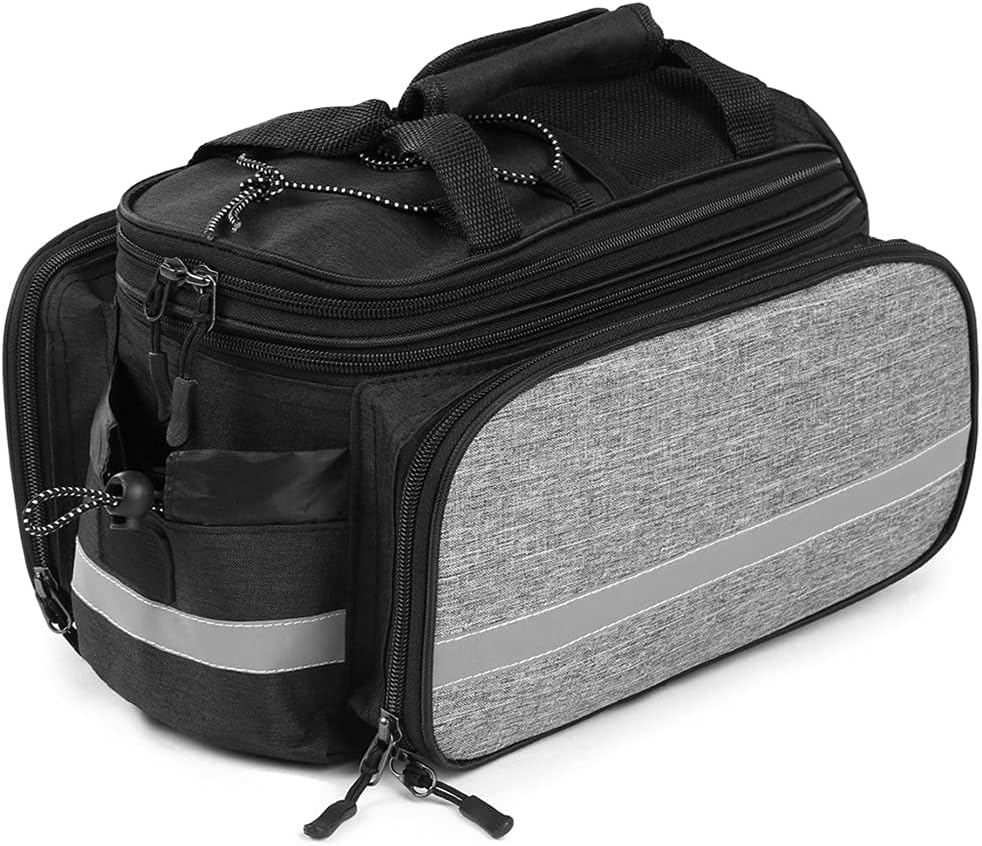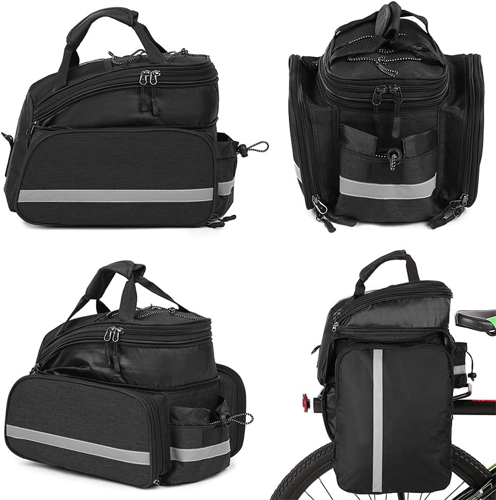 Description:Using waterproof fabric, the body is soft and comfortable, the fabric is clean and flat, and has good wear resistance.Easy to install, no tools required. This bicycle rear seat bag has two side quality buckles and a sturdy shoulder strap.The four sides of the bicycle trunk are thickened to provide cushioning and reduce vibration when driving on uneven roads.The kettle compartment rope buckle design is convenient for disassembly and fixation of the kettle. The kettle compartment is equipped with wide-side lights and reflective strips, and the two sides of the bag are widened and reflective for safety when riding.On the top of the bicycle trunk is a mesh bag with a shrink strap, which is used to fix bicycle accessories, such as a mini pump.specification:Stretching size: 35 * 23 * 19cm/ 13.8 * 9 * 7.5inStretching size: 28 * 23 * 34cm /11 * 9 * 13.4inMaterial: waterproof fabricCapacity: 25LColor: black/black and gray (optional)packing list:1*Bike bag1*Rain cover1*Strapnotes:1. Manual measurement, please allow 1~3mm error, thank you.2. Due to the difference of different monitors, the picture may not reflect the actual color of the project. We that the is the same as the picture.