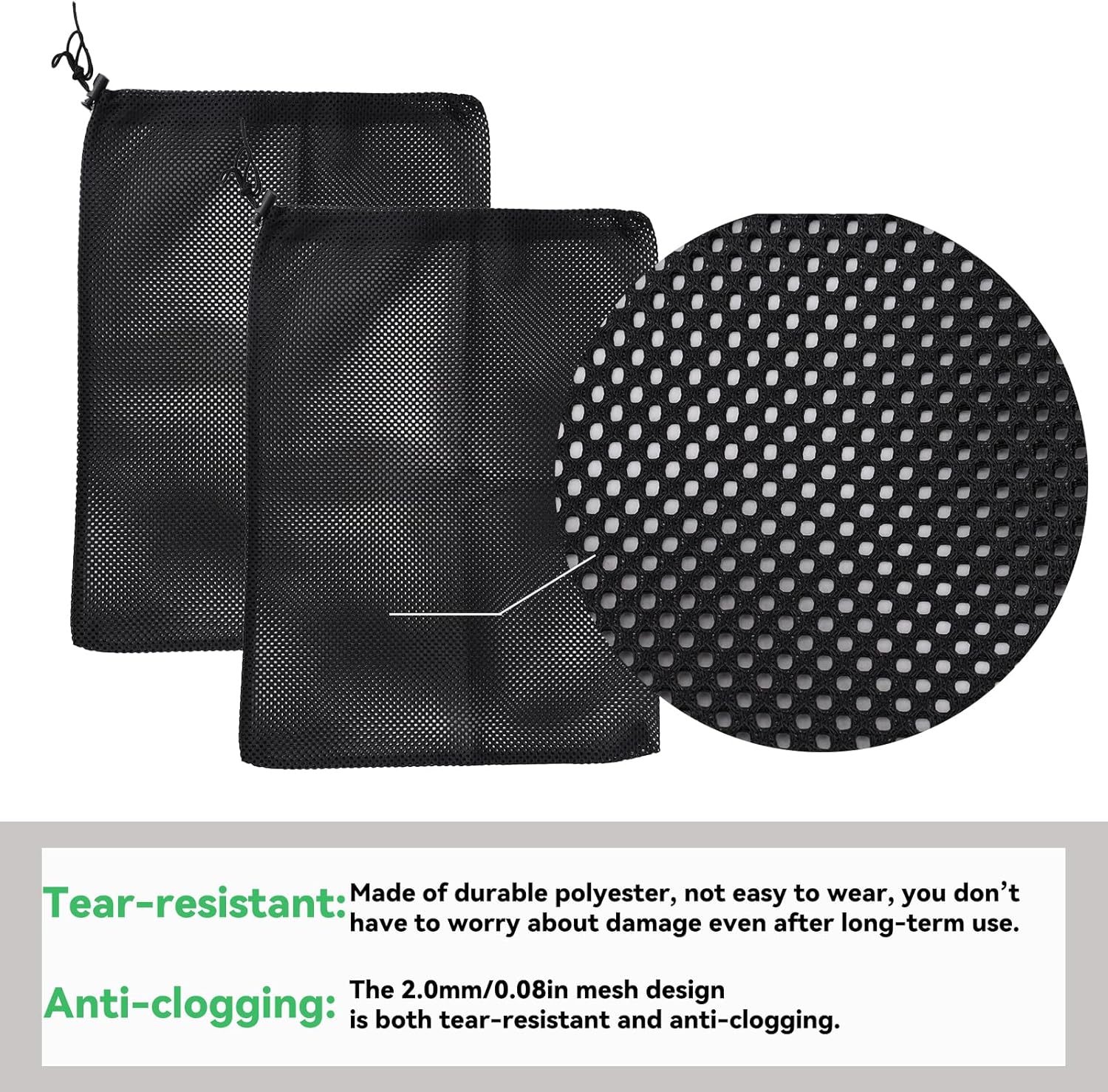 Specification: Color: black Material: polyester Product Size: 40x30.3cm/15.75x11.93in Package details: 2 x water pump filter bags Note: Due to manual measurement, the size and weight may have a certain error. Due to the difference between monitors, there may be a slight color difference.