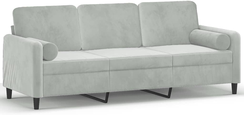 This 3-seater sofa redefines comfort with its slick design and lovely velvet texture, blending style and practicality in your living area. Its generous width of 70.9 in offers plenty of space for three people, making it perfect for group hangouts, relaxed evenings, or cozy reading sessions in stylish surroundings.Soft Velvet Feel: The premium velvet fabric brings a touch of luxury, giving you both style and comfort for everyday use.Modern Design: With its clean lines and a fresh finish, this sofa boosts the vibe of any room while being super functional.Removable Covers: Zippered covers make it easy to clean and maintain, so you can keep your sofa looking sharp.Sufficient Seating Capacity: Seats up to three people, making it a great spot for hanging out, relaxing, or diving into a good book.Two Complementary Pillows: Throw pillows included for extra coziness, enhancing both comfort and style.Colour: Light Grey Shape: RectangularMaterial: Farbic VelvetFinish: Matte Indoor/Outdoor: Indoor OnlyCover Included: NoRoom: Living RoomCapacity: 3 seatsMaximum Number of People: 3Maximum Weight: 110 kgDimensions: 77 x 198 x 80 cm (W x L x H)Leg Height: 10 cmWeight: 26 kgSeat Depth: 50 cmSeating Capacity: 3Swings: NoDelivery Contains: 1 x 3-Seater sofaAssembly Required: YesRecommended Number of People for Assembly: 2SKU: 3200891