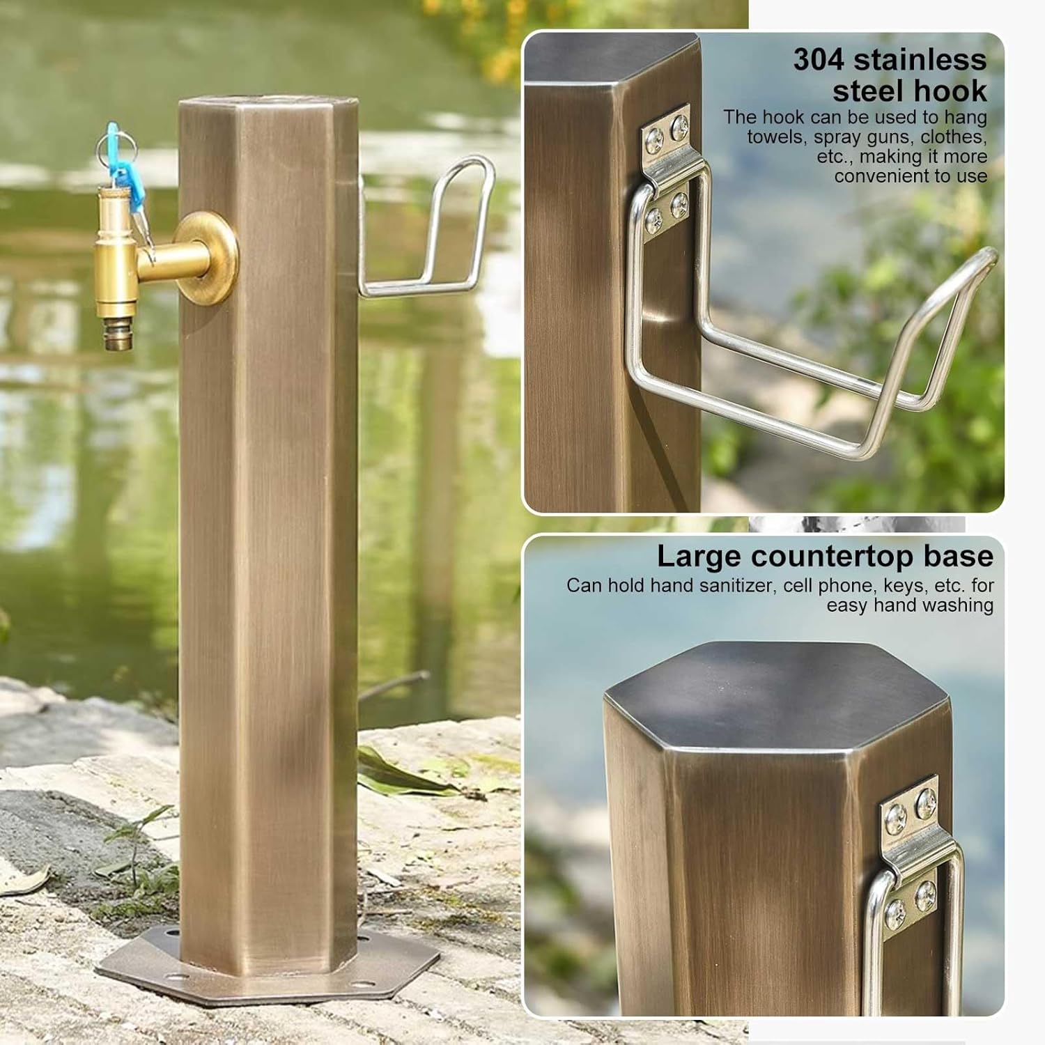 Introducing our versatile Outdoor Garden Water Column, designed to enhance your gardening experience with functionality and style. Available in three sizes—20x4 inches, 34x4 inches, and 34x2 inches—this water column is perfect for any outdoor space, whether it’s a garden, yard, or workshop. Crafted from durable 304 stainless steel, the water column features a sleek square tube design in an elegant gold color, ensuring it complements your landscape while withstanding the elements. The universal water inlet allows for easy connection from the bottom or side, providing flexibility for various setups. Say goodbye to tangled hoses! Our integrated hose holder conveniently stores hose reels, towels, and other essentials, reducing hose curling and kinking, and ultimately prolonging the life of your hose. The thoughtfully designed side water inlet stands at 4.7 inches from the ground, making it accessible for all your watering needs. Experience customizable watering with our 7 spray gun modes: rain, shower, direct spray, flushing, three-point, centralized, and flat. Whether watering delicate flowers or cleaning outdoor surfaces, you’ll find the perfect spray pattern for every task. Engineered to withstand harsh weather, this water column offers antifreeze, sun protection, and rust prevention features, making it ideal for farms, schools, gardens, and more. Your purchase includes everything you need: one water column, a lockable faucet, a spray gun, a hook, and all necessary installation accessories. Elevate your outdoor watering solutions with our Outdoor Garden Water Column—where functionality meets style.
