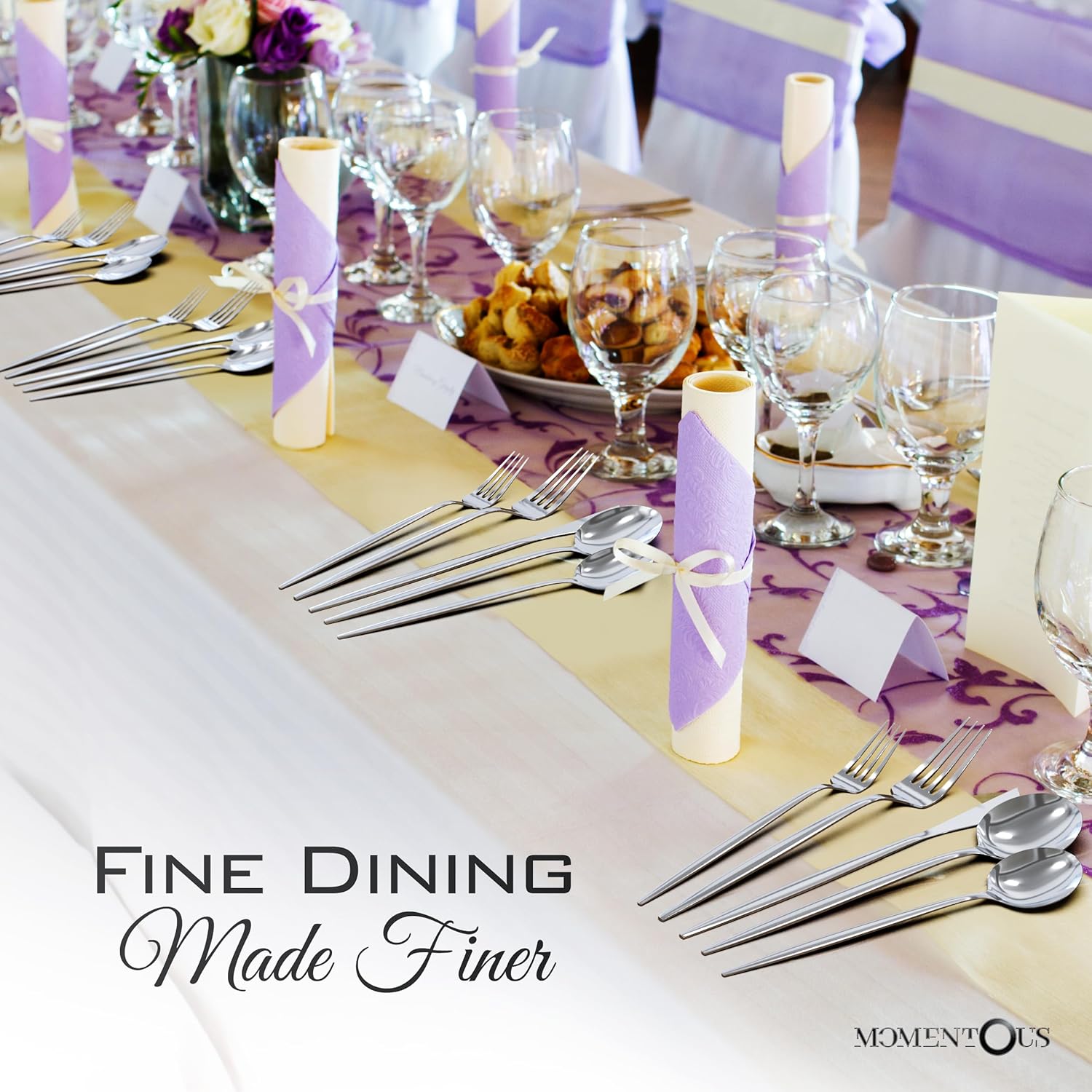 Introducing Our 40-Piece Silverware Set – The Ultimate Dining Upgrade! Elevate your dining experience with our 40-piece silverware set, thoughtfully designed for your convenience and dining pleasure. This set includes 8 packs, each containing 1 knife, 2 spoons, and 2 forks, making it a versatile solution for every meal and occasion. Premium Stainless Steel Construction: Crafted from high-quality stainless steel, our silverware set is engineered for excellence. You can trust in its long-term durability, resistance to tarnish, and freedom from rust. Say goodbye to flimsy cutlery and hello to lasting quality. Complete 5-Piece Set: Our 40-piece collection ensures you have the perfect utensils for every dining scenario. From slicing through tender steak with the knife to savoring every bite with the spoons and forks, this set has you covered. It's a comprehensive dining solution for you and your guests. Ergonomically Designed for Your Comfort: Our silverware features an ergonomic design, ensuring comfortable and easy handling. Every meal becomes a joy to savor, thanks to the thoughtful craftsmanship that's easy on your hands. Polish Finish for Elegance and Easy Care: The polish-finished surface of our silverware not only adds a touch of sophistication to your dining table but also makes for effortless cleaning and maintenance. Enhance your table setting with this elegant touch. Durability and Longevity: Constructed with premium stainless steel, our silverware is built to last. Say goodbye to the hassle of frequent replacements. This set is an investment that saves you money in the long run. Convenience and Versatility: Experience the convenience of having the right utensils for any meal, from your morning breakfast to a sumptuous dinner. Impress your guests with a well-set table for special occasions. Versatility at its finest! Effortless Cleaning with Dishwasher-Safe Design: Say farewell to the tedious post-meal cleanup. Our silverware set is dishwasher-safe, reducing your time at the sink and allowing you to spend more time enjoying your meals. Upgrade your dining experience today with our 40-Piece Silverware Set. Embrace the perfect blend of style, durability, and convenience at your table. Make every meal a memorable occasion. Order now!