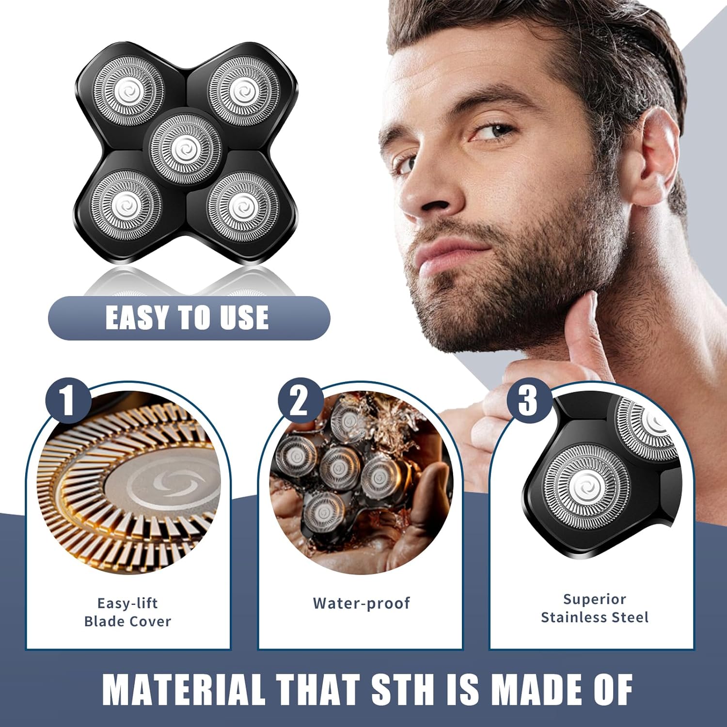 5 Blades Magnetic Head Shaver Replacement Blades Compatible with MANSCAPED The Dome Shaver, Magnetic Attachment for Men's Head Shaver