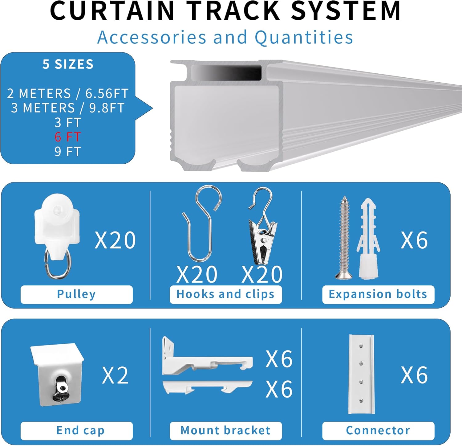 Ceiling Curtain Tracks – Heavy-Duty Aluminum Alloy Rails for Ceiling or Wall MountingTransform your space with our Ceiling Curtain Tracks, designed to offer both functionality and style. Crafted from durable aluminum alloy, these heavy-duty rails are built to withstand the test of time, ensuring long-lasting performance for your room dividers, curtains, or drapes.Versatile Installation Options: Whether you prefer ceiling or wall mounting, our curtain tracks have you covered. The package includes top mounting brackets and side mounting brackets, allowing you to choose the perfect installation method based on your surface type. The straightforward installation process comes with easy-to-follow instructions, enabling you to set it up effortlessly without the need for professional assistance.Sleek and Sturdy Design: The minimalist yet robust design of these tracks seamlessly blends into any interior decor, making them ideal for living rooms, bedrooms, offices, or even as room dividers. The smooth-gliding mechanism ensures your curtains or drapes move effortlessly, enhancing both convenience and aesthetics.Why Choose Our Ceiling Curtain Tracks?- Heavy-Duty Construction: Made from premium aluminum alloy for superior strength and durability.- Flexible Mounting: Compatible with both ceiling and wall installations.- User-Friendly Setup: Simple instructions for hassle-free DIY installation.- Smooth Operation: Ensures effortless curtain movement for a polished look.Upgrade your space with our Ceiling Curtain Tracks and enjoy the perfect blend of functionality, durability, and style. Whether you’re dividing rooms, adding privacy, or enhancing your decor, these tracks are the ideal solution for your needs. Order now and experience the difference!
