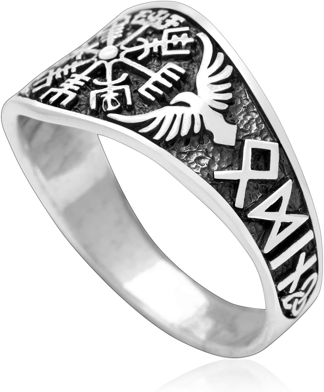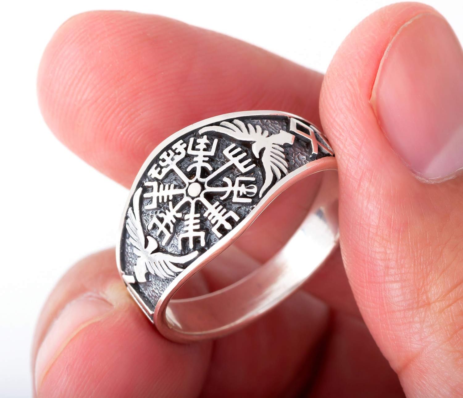 This is a Viking band ring made from Sterling Silver (925). Its approximate weight is 5-6gr. Frontal max height approx. 1/2" (12mm).