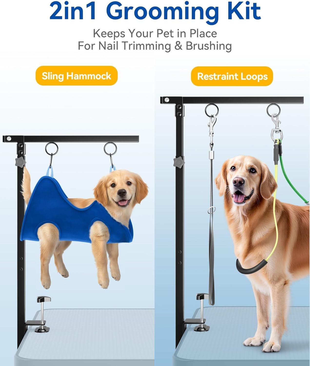 Adjustable Foldable Dog Grooming Arm with Clamp, 26–40 in Height, Safety Hammock & No-Sit Holders, Grooming Restraint for Small & Medium Dogs