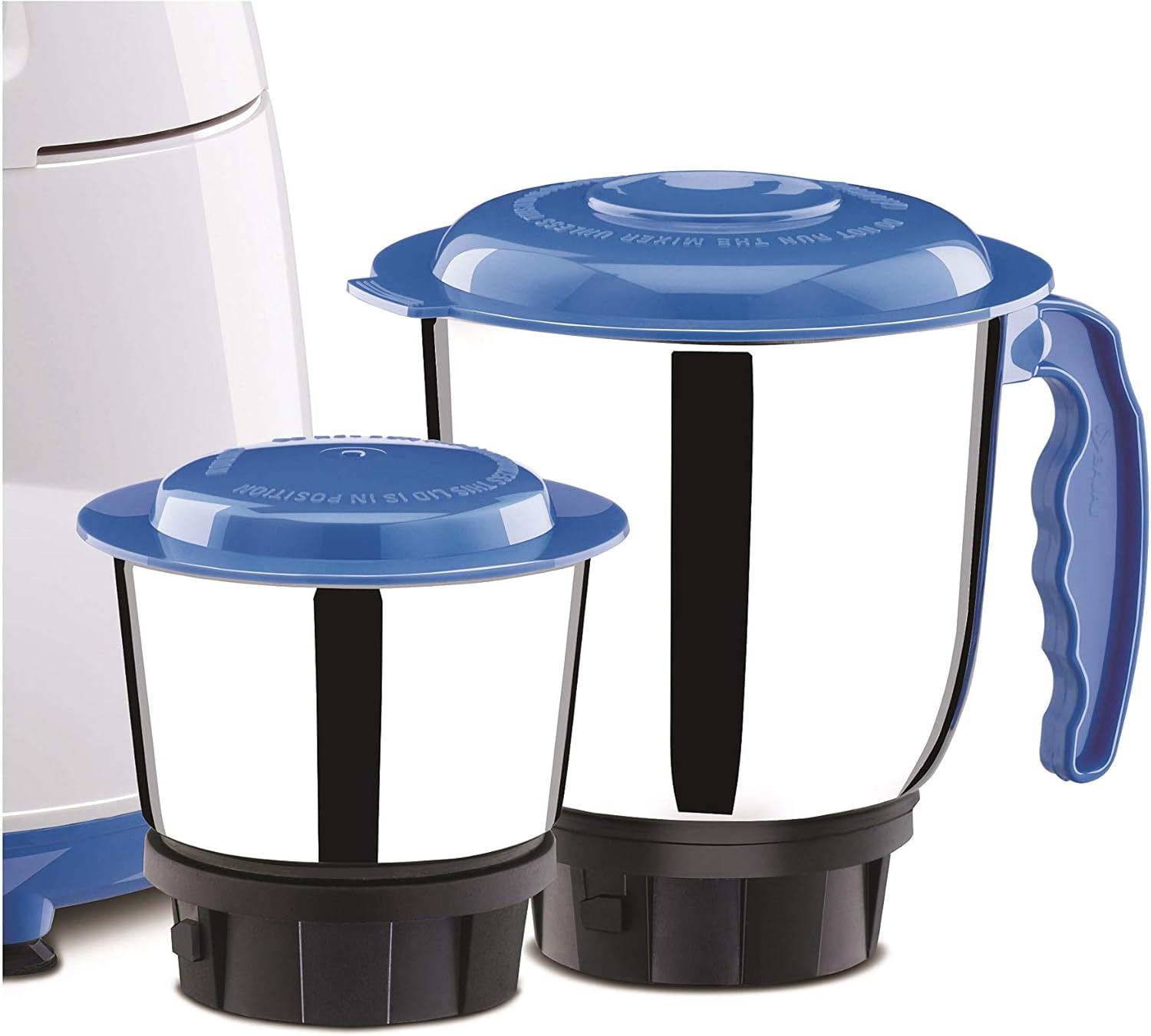 Bajaj Bravo Dlx 500-Watt Mixer Grinder (White/BLUE)Powerful 500 Watts Motor : Get smooth and speedy results with Bajaj Bravo Dlx Mixer Grinder. The mixer grinder has a powerful 500 watts motor efficient for high-performance grinding.RPM: 20,000 : The mixer grinder has an efficiency of 20,000 revolutions per minute to help you making your kitchen tasks easier and faster.2 in 1 Functional Blade : Useful for grinding raw masala or making smooth paste for curries the mixer grinder features 2 in 1 functional blade.3 Jars Included : The mixer grinder includes 3 jars for your choice of grinding. A 1.3 Litre stainless steel liquidizing jar, a 1 Litre stainless steel grinding jar and 0.3 Litre stainless steel chutney jar. Easy Grip Handles : To avoid slippage while handling the jar and make the job easy for you, the jars have anti slip, easy grip handles.Easy To Clean : The mixer grinder can be cleaned using a damp cloth or just with a dry one. The jars are of stainless steel and are washable.