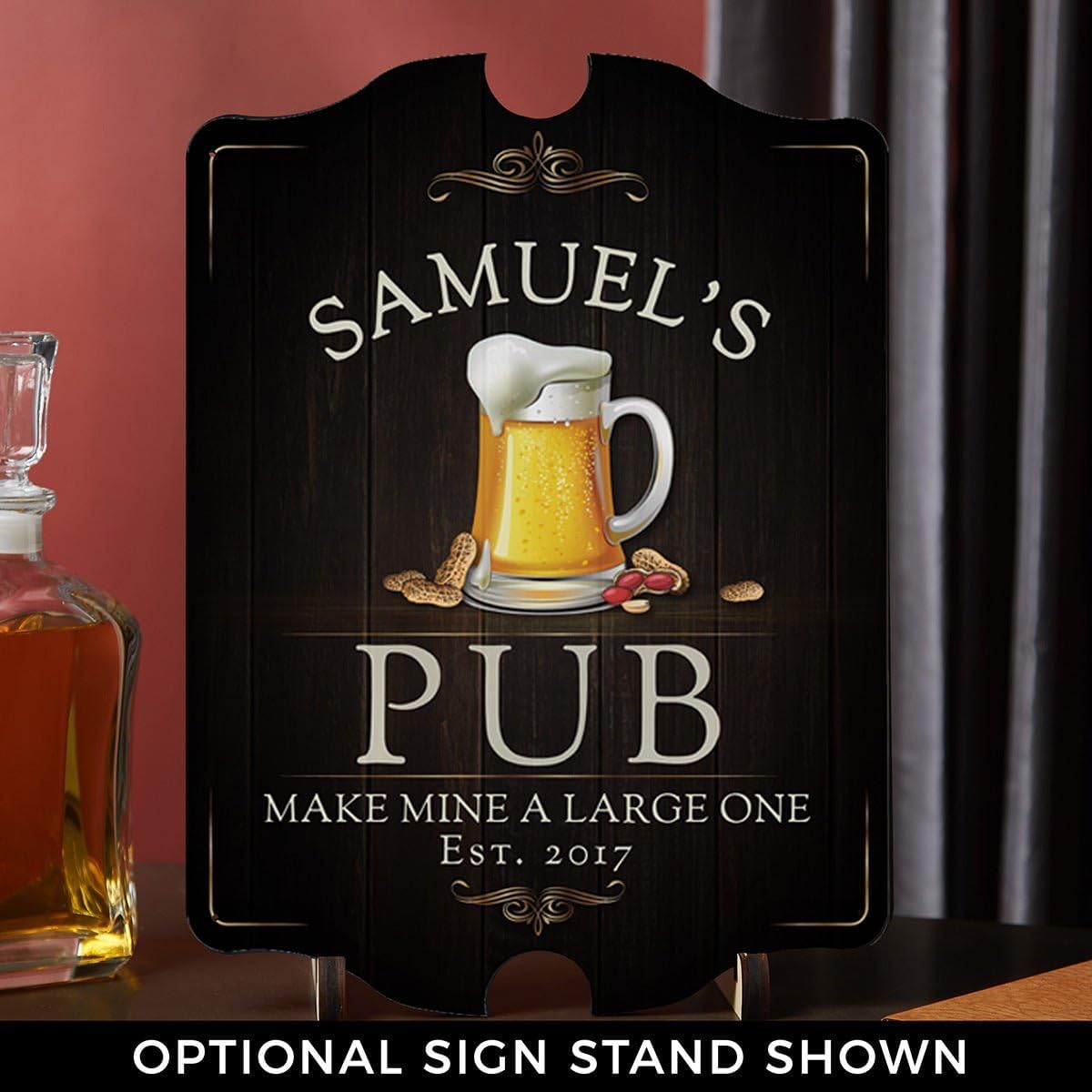 Sure, there are many classic pairings: ham and cheese, peanut butter and jelly, Batman and Robin. But no pairing is more famous than the one that inspired our Beer & Nuts customized bar sign for home. Faithfully made from first-class American birch wood, this full-color custom pub sign is perfect anywhere, from game room to living room. Personalized with the name of your choice, this customized bar sign was inspired by authentic artwork from 19th-century public houses and taverns. The full-color printing lets the natural wood grain shine through for a traditional look that welcomes guests the proper way. Four pre-drilled nail holes make hanging as easy as cracking a shell and downing a pint.
