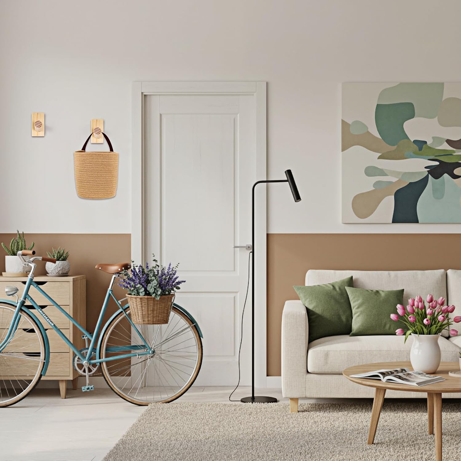 Features: Versatile Storage: Our hanging basket Can be applied in the kitchen to store fruits, vegetables, spices, and more. Suitable for Hanging: These wall hooks can be applied as towel hooks, coat hooks, hat hooks, cup hooks, outdoor hooks, key hooks, plant hooks, picture hooks, gardening tool hooks, and more. Specifications: Material: wood, cotton rope Color: khaki Size Hanging basket: 7.87 x 7 x 11.8 inches Adhesive wall hooks: 2.7 x 1.5 x 0.7 inches Package includes: 4 Hanging baskets 12 Adhesive wall hooks Notes: Manual measurement, please allow slight errors on size. The color may exist a slight difference due to different screen displays