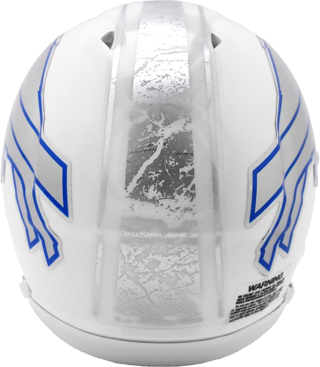 Mini Speed Football Helmet. The ultimate mini speed football helmet collectible, perfect mini speed football helmets for autographs and collectors. Mini Speed Football Helmet with great graphics. Mini Speed Football Helmet with team decal. ABS plastic Mini Speed Football Helmet shells with plastic facemask. Realistic interior foam padding, vinyl-leather chin strap. This is an affordable miniature football helmet for the true fan. Size: 1/2 scale versions of football helmets. Size: 6"(L), 4½"(W), 5"(H) - (NOT FOR WEARING)