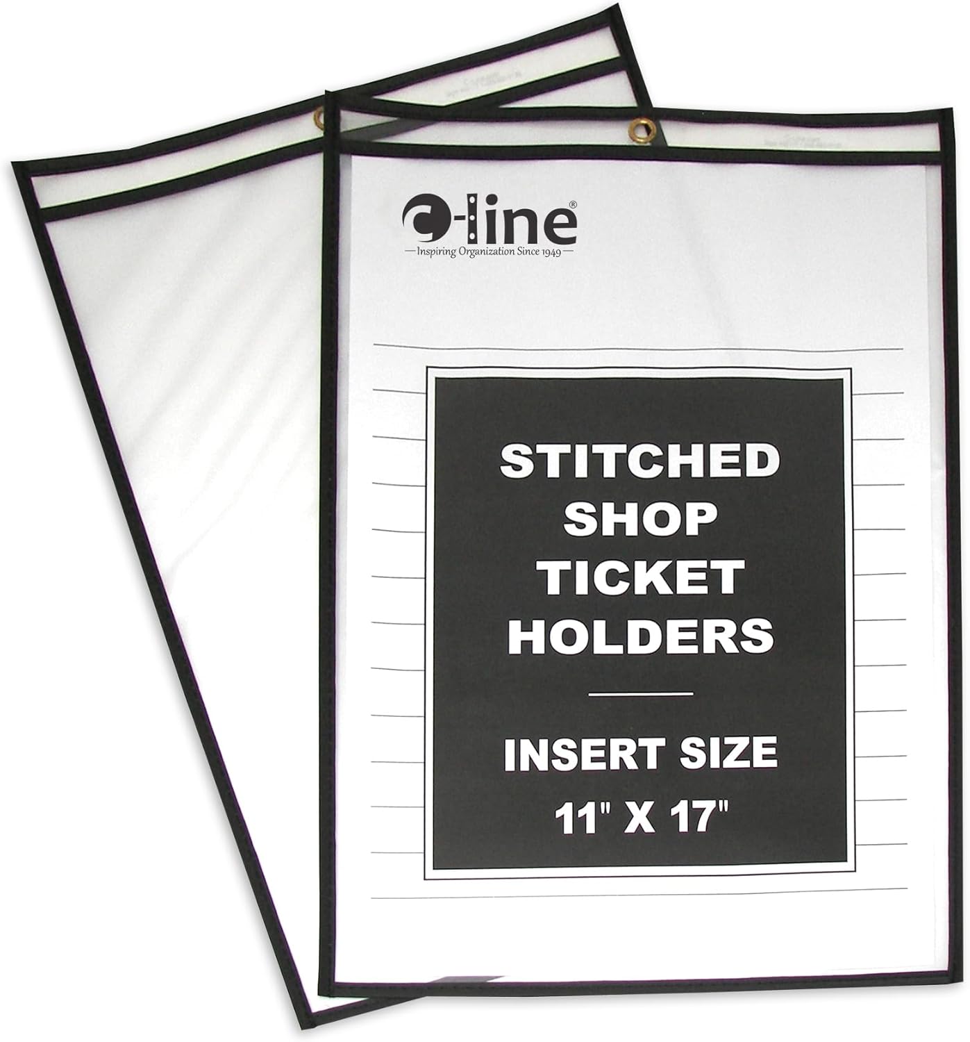 These sturdy holders last a long time. Opens on 12 inch side for fast loading. Store and protect work orders, production schedules, inventory cards and more in these C-Line stitched shop ticket holders. Strong, rigid, clear vinyl allows for easy visibility of documents. Convenient eyelet at top for hanging. Reinforced stitched edge for longer product life. 9 x 12 size. Both sides clear. Holders open on LONG side. 25/BX.