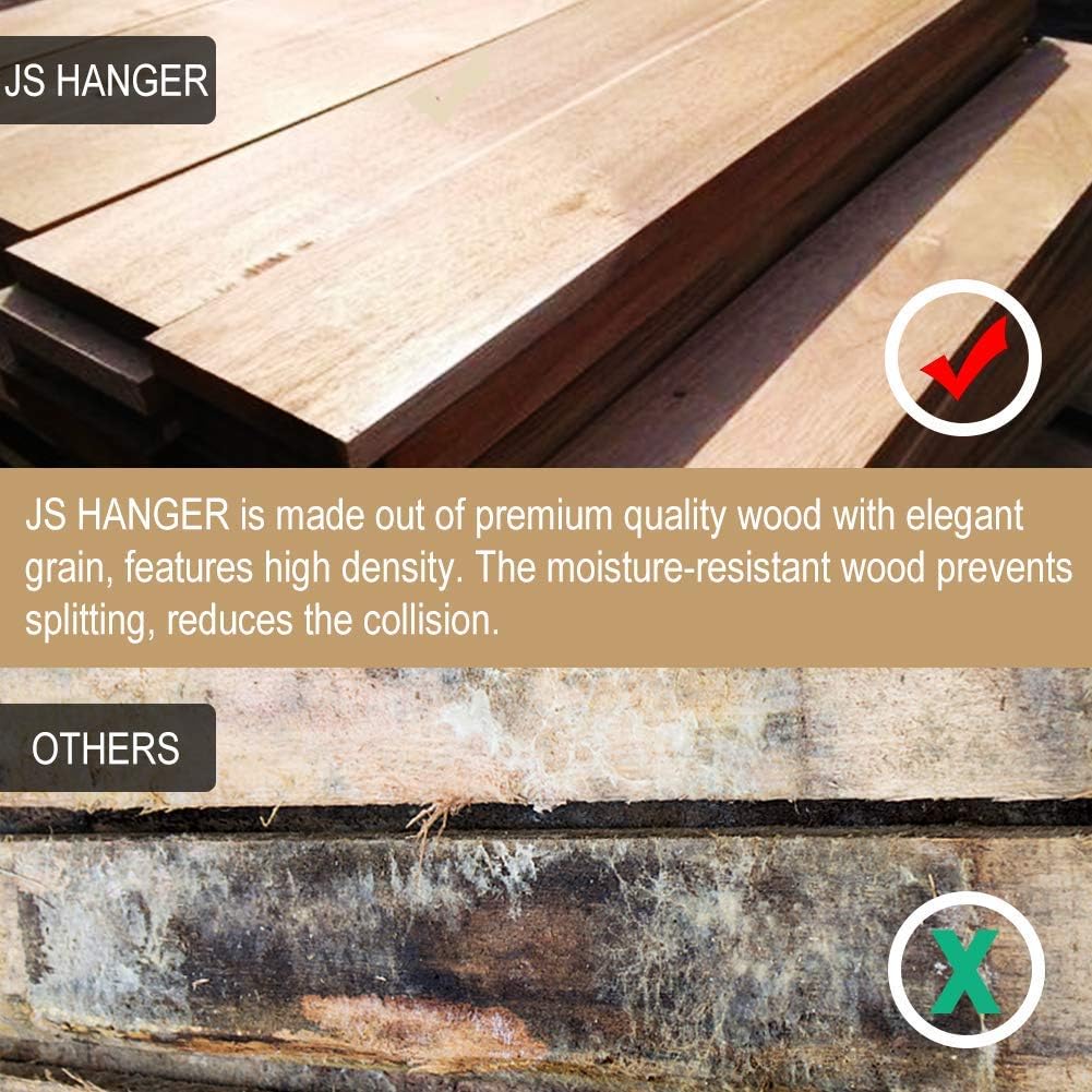 JS HOME Coat Hangers, 18 Pack Solid Wooden Suit Hangers with Notched Cut Shoulder, Non-Slip Pant Bar, Extra Smooth and Splinter Free Walnut Finish