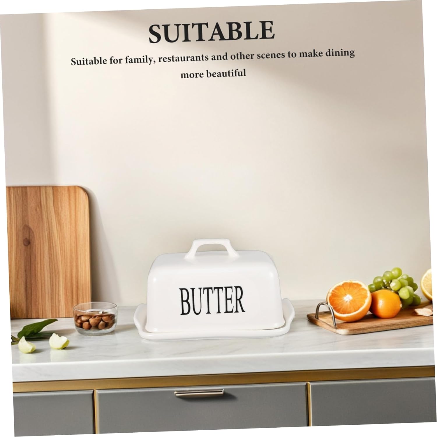 Package Include 1 x butter dish Features -Size:20.00X11.00X11.00cm/7.86X4.32X4.32in french butter keeper -Freshnesspreserving lid: the lid design your food stays fresh, preventing spoilage and extending the shelf life of your ingredients porcelain butter dish with lid. -Material:Ceramics butter dish with lid -Elegant ceramic design: enhance your kitchen's style with our beautifully designed ceramic butter dish, adding a touch of elegance to your dining experience ceramic butter dish. -Color:White european butter dish -Multifunctional use: ideal for butter and cheese, this versatile container is also great for storing other condiments and small snacks, offering great practicality butter holder for counter. -Enhances dining experience: great for family meals and restaurant settings, this butter dish enhances the dining experience, making every meal special small butter dish with lid. -Ample storage space: with its large capacity, this storage box can hold various ingredients, making kitchen organization easier and saving valuable space butter dish vintage.Goods Descriptionbutter holder This porcelain butter dish with lid is an for butter storage.butter holder for refrigerator The sleek design and sturdy material make it a beautiful addition to any kitchen or dining setting.covered butter dish The lid provides an airtight seal, keeping your butter to use.ceramic dishes great for special occasions or everyday use, it combines style and functionality