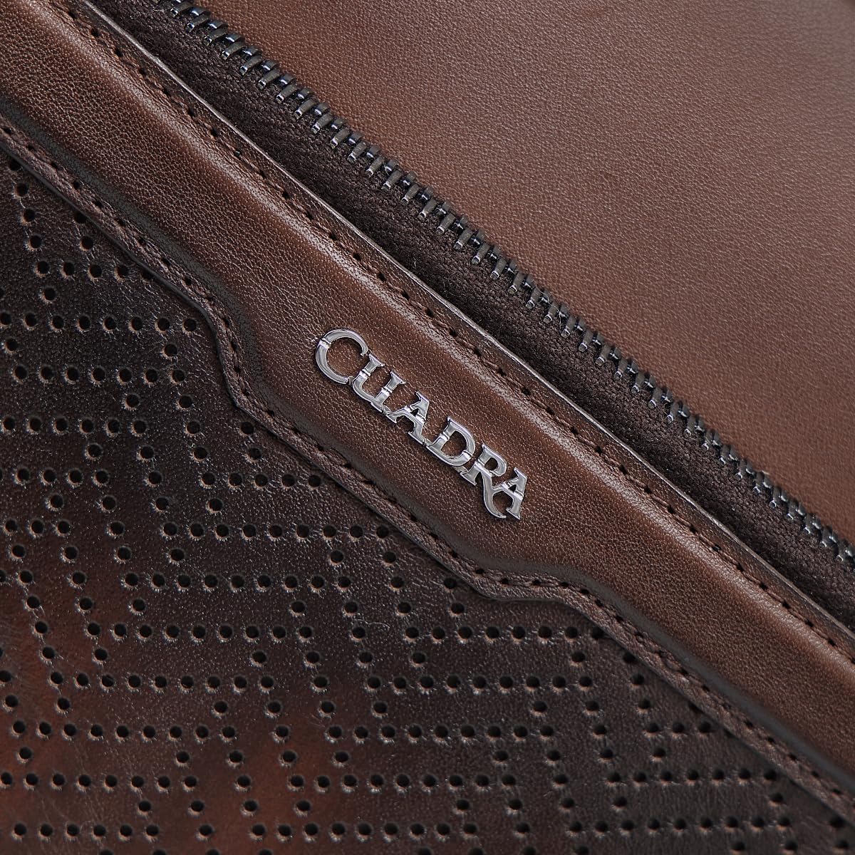 Elevate your daily carry with this sophisticated Cuadra Messenger bag for men with genuine bovine leather, it presents contrasting textures. With a metallic Cuadra logo on the front and geometric perforations that elevate its contemporary look. This functional bag includes two main zippered compartments, with the larger one offering two interior pockets for organized storage. It comes with an adjustable fabric strap for comfortable daily use.