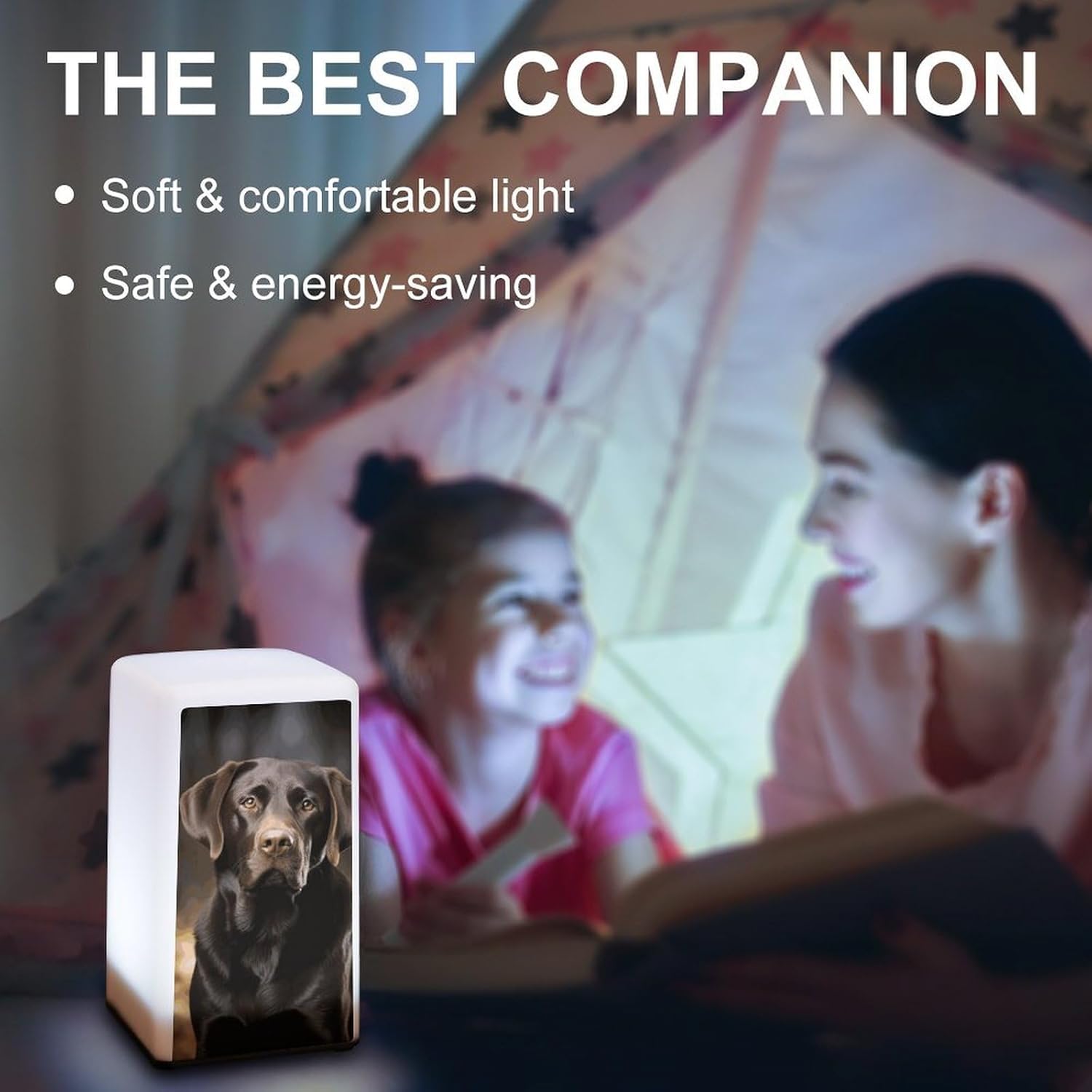 Made of durable plastic, this Labrador Retriever printed small bedside table is a must-have for modern living. It features dual brightness adjustment. When you stay up late reading in your study, switch to the high setting for crisp, bright light. In the bedroom, the low setting provides a soft glow to guide you on your nighttime errands without disturbing your sleeping partnerThis mini lamp has uses beyond the home. In bars and cafes, its warm, inviting light creates a welcoming atmosphere that keeps customers coming back for more. In the kitchen, it provides the lighting for a late-night snack, and on your desk, it ensures you have light while you work or studyDesigned with portability in mind, this cordless lamp is easy to move with its lightweight construction and battery operation. Whether you're rearranging your living room, working in the garden, or traveling, it'll light your way. Simply load up with 3 AAA batteries (not included) and you're ready to goNot only is it powerful, its sleek design makes it a stylish addition to any room. It blends in with a variety of home decor, serving as both a lighting source and an elegant decorative pieceThis table lamp is an ideal gift. Its classic long shape and practical functions make it a great gift for friends and family on birthdays, holidays or any special occasions