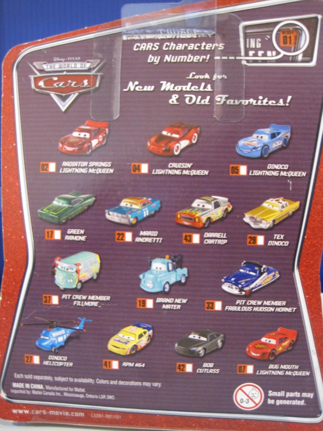 From the Manufacturer It's fun to collect these 1:55-scale, die-cast action-sized vehicles! All your favorite characters from the Disney/Pixar movie, CARS, including Lightning McQueen, Ramone, Mater, Sally, Hudson Hornet, Boost, and King