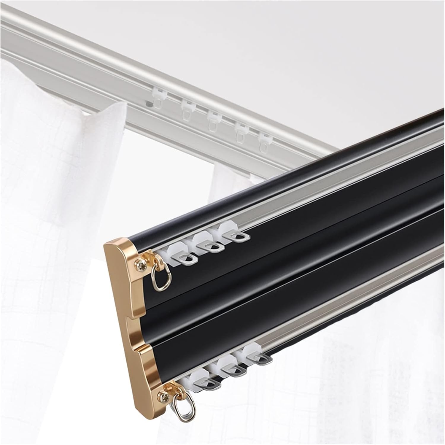 Introducing our curtain track, a product designed to simplify your window dressing experience. Installation is straightforward, with all required components included and clear instructions for a quick setup on walls or ceilings. The track ensures smooth gliding motion, allowing curtains to open and close effortlessly. Its secure fixing mechanism provides stability, firmly attaching to the surface and supporting different curtain weights. It's highly versatile, compatible with various curtain styles, window sizes, and shapes. And with a durable construction, made to endure frequent use and the elements, this curtain track promises to be a reliable addition to your home for years to come.Ceiling curtain track